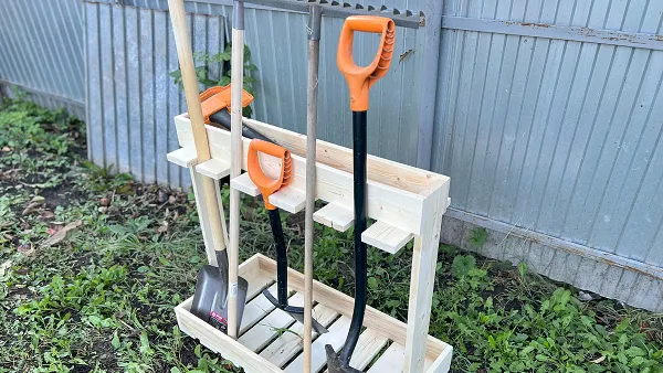 В итоге получаем простое и готовое решение для хранения садового инвентаря. Каждый инструмент теперь на своем месте, а у вас, действительно полезная вещь, которая помогает поддерживать порядок в саду.