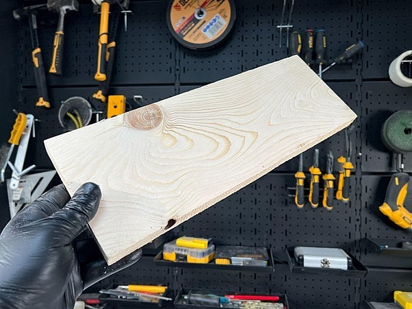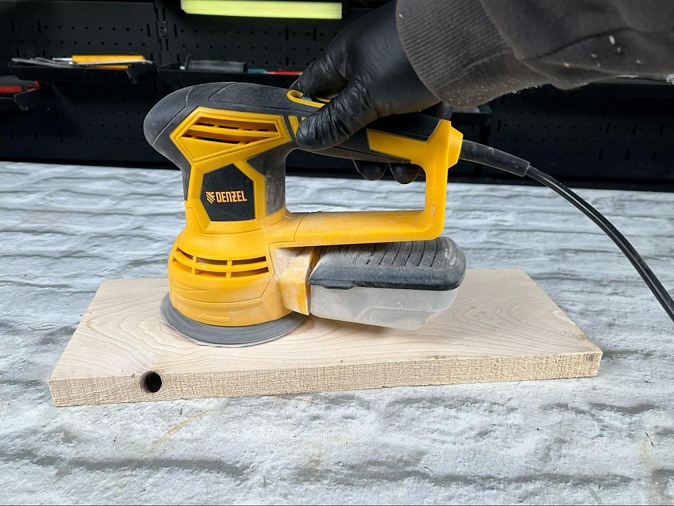 Итак, обрезок доски у нас уже готов. Сначала нужно привести его в порядок, убрать все заусенцы и занозы. Для этого подойдет шлифовальная машинка, а если ее нет, можно воспользоваться обычной наждачной бумагой.