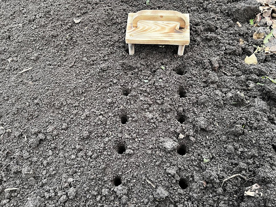 Теперь лунки получаются одинаковые, посадка идет легко, а грядка выглядит аккуратно и ровно, как будто сделана по линейке.