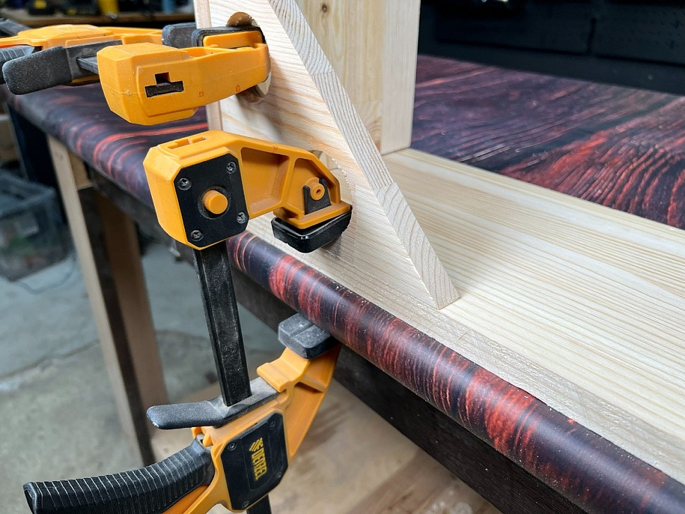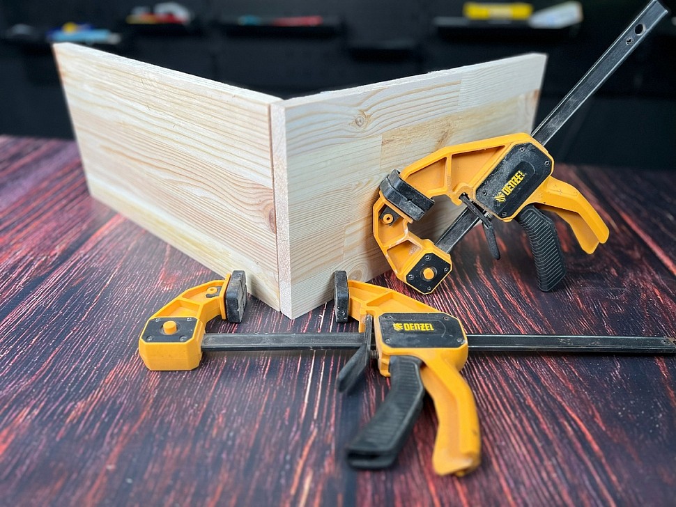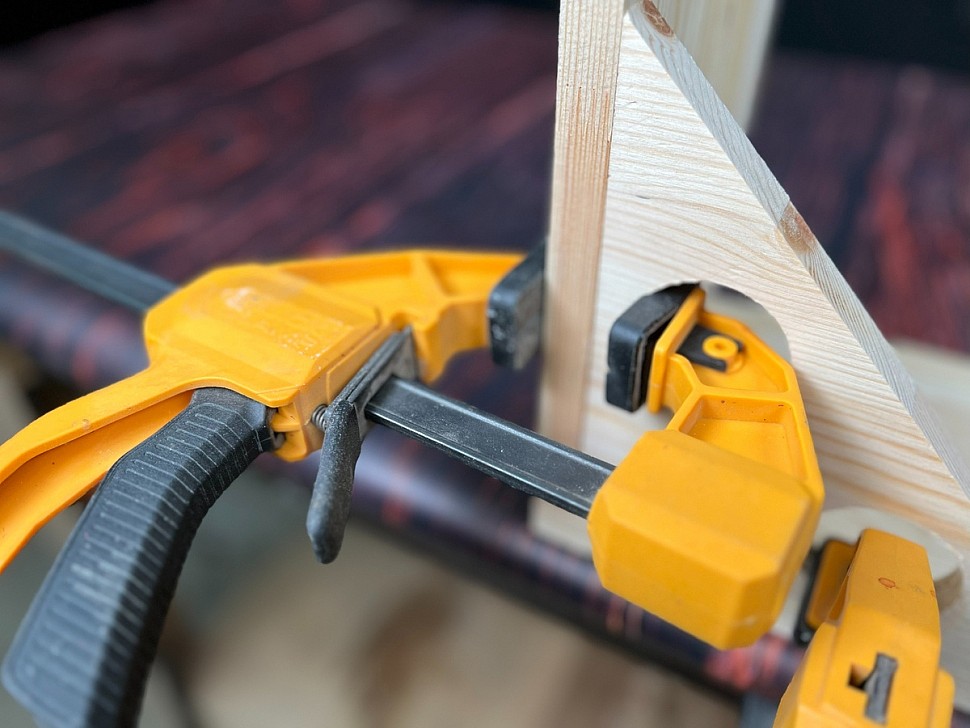 Теперь можно использовать обычные струбцины: благодаря проделанным отверстиям их легко зафиксировать, и детали будут держаться плотно и надежно.