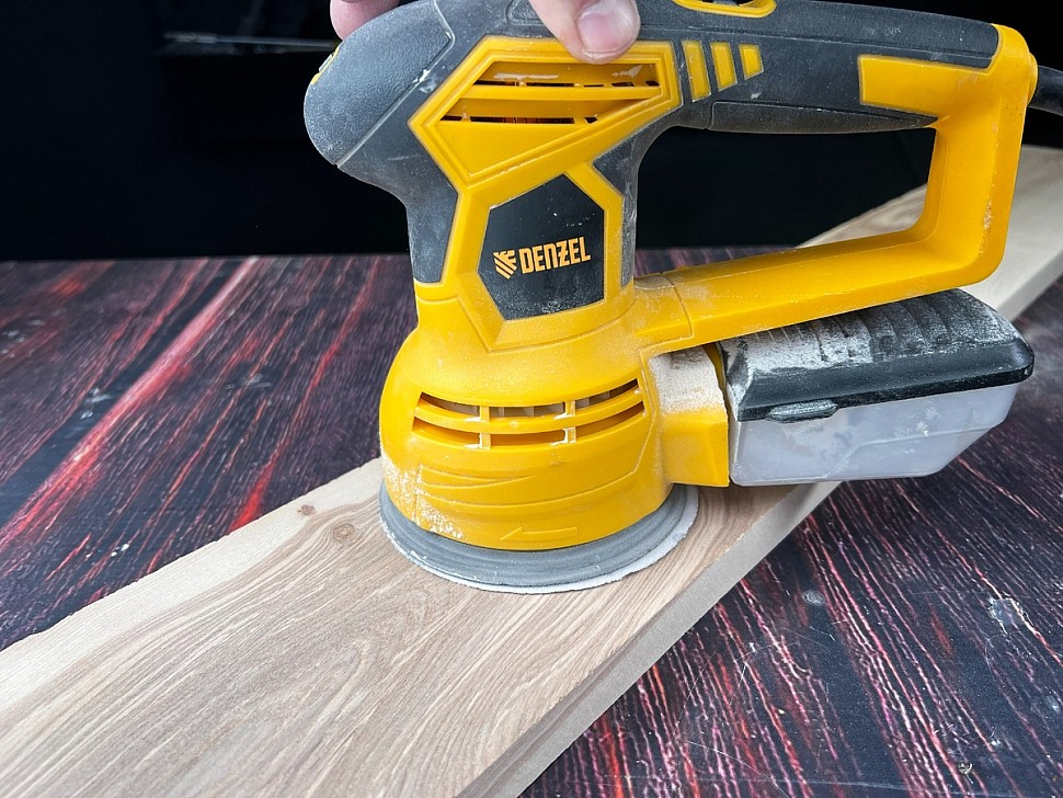 Доска у нас уже сухая, ровная и строганая. Главное правильно ее подготовить. Точнее, довести до ума с помощью шлифовальной машинки, чтобы придать поверхности тот самый благородный вид.