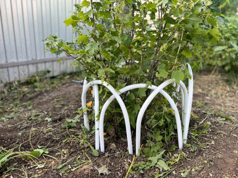 Тут на ваше усмотрение, мы например, решили оградить куст смородины вот так.