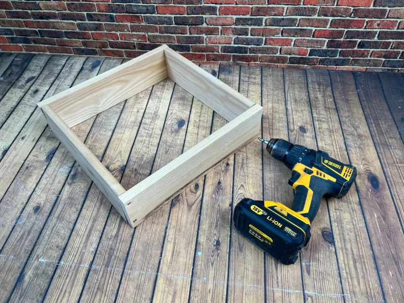 Для изготовления приспособления потребуется квадратный мебельный щит или фрагмент ДСП размером 200*200 мм. При этом точные размеры могут быть адаптированы под ваши заготовки, и мы предоставляем пример на самых минимальных размерах для наглядности.