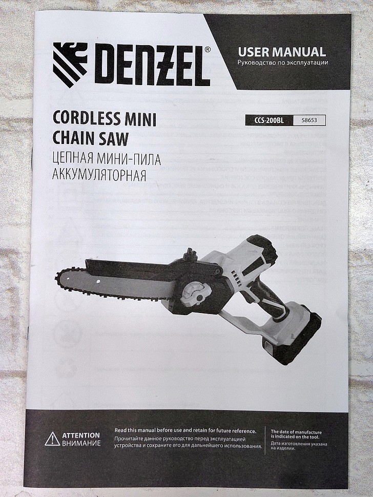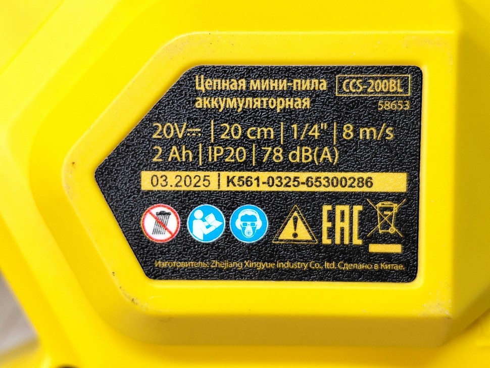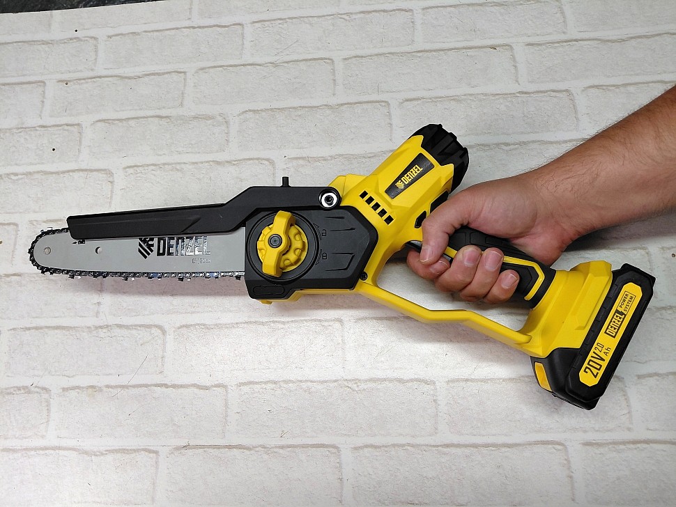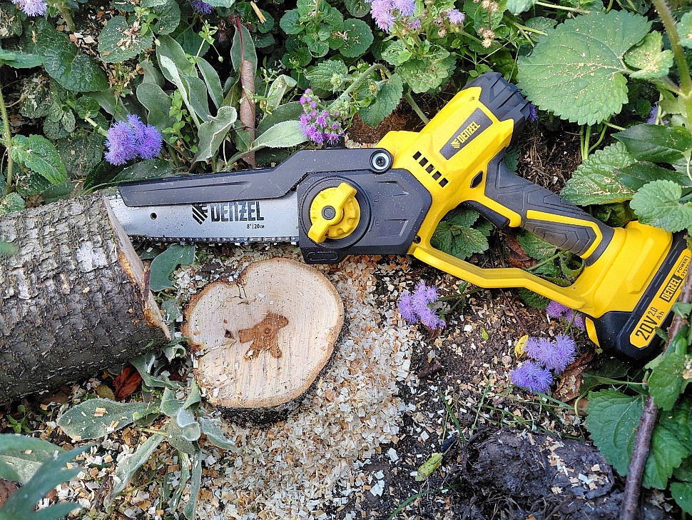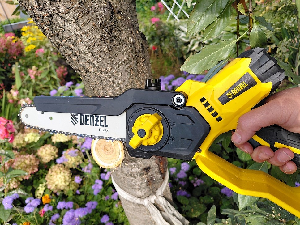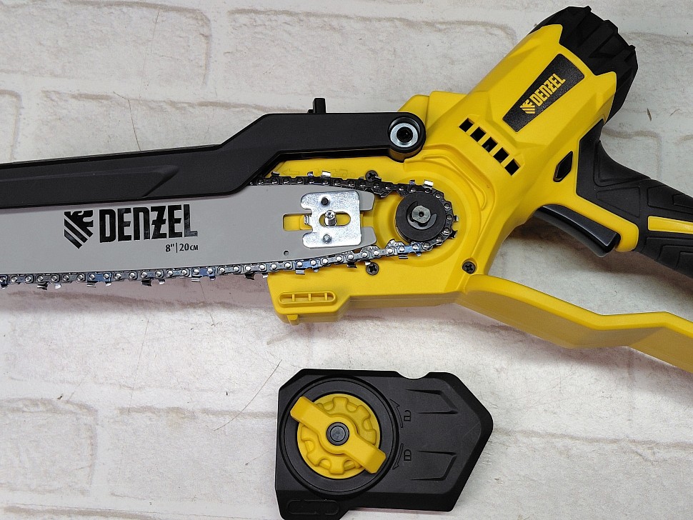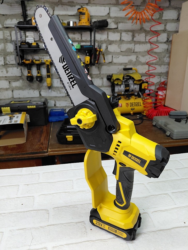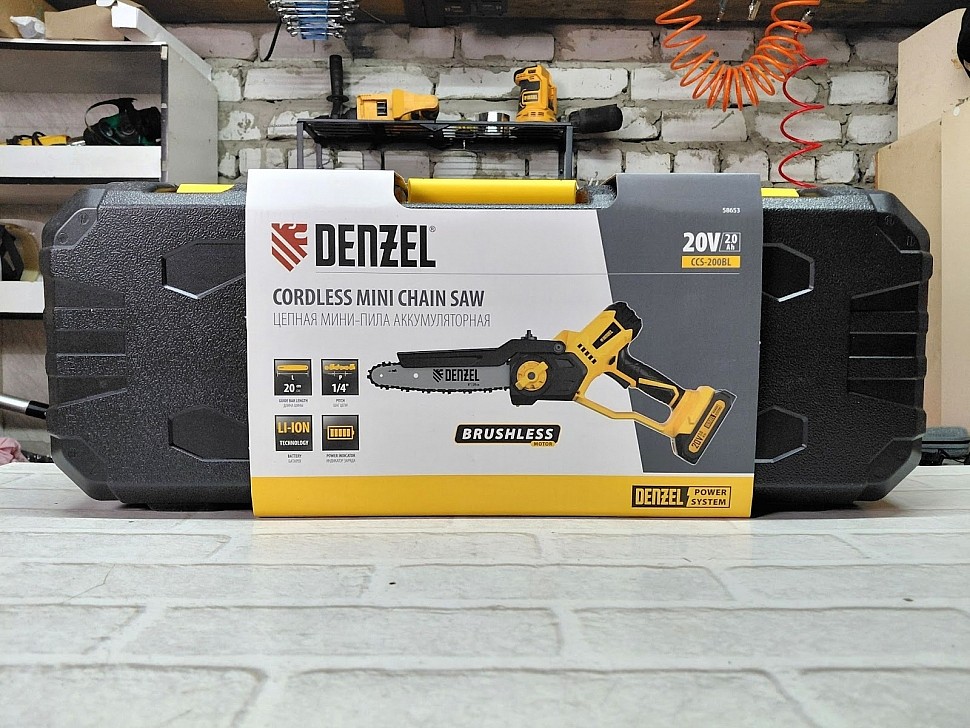 Обзор цепной аккумуляторной мини-пилы с бесщеточным двигателем DENZEL СCS-200BL