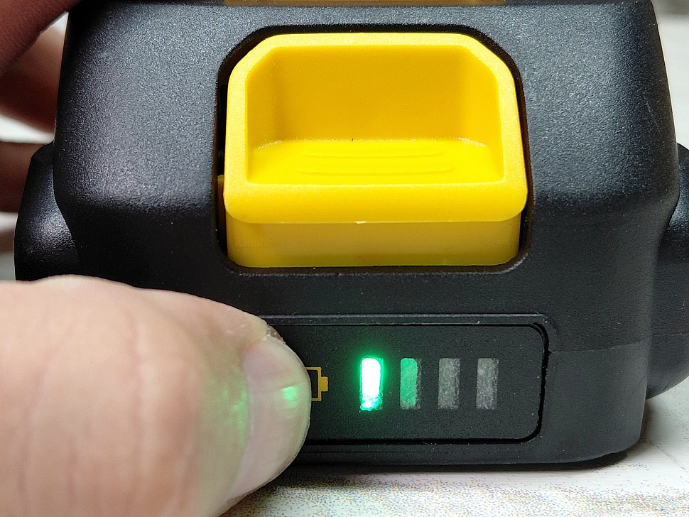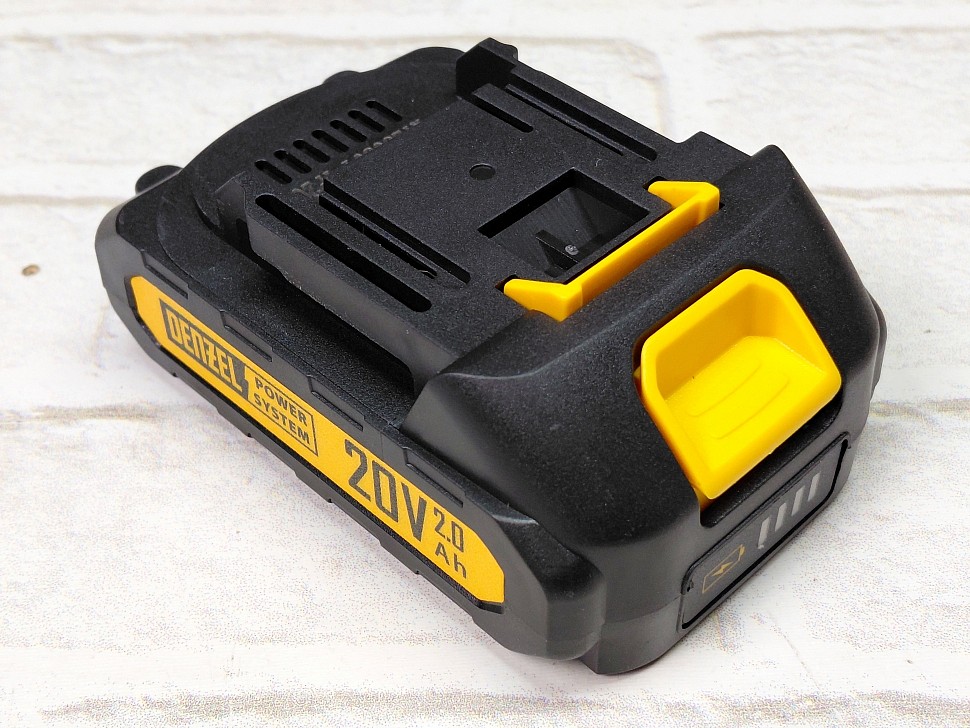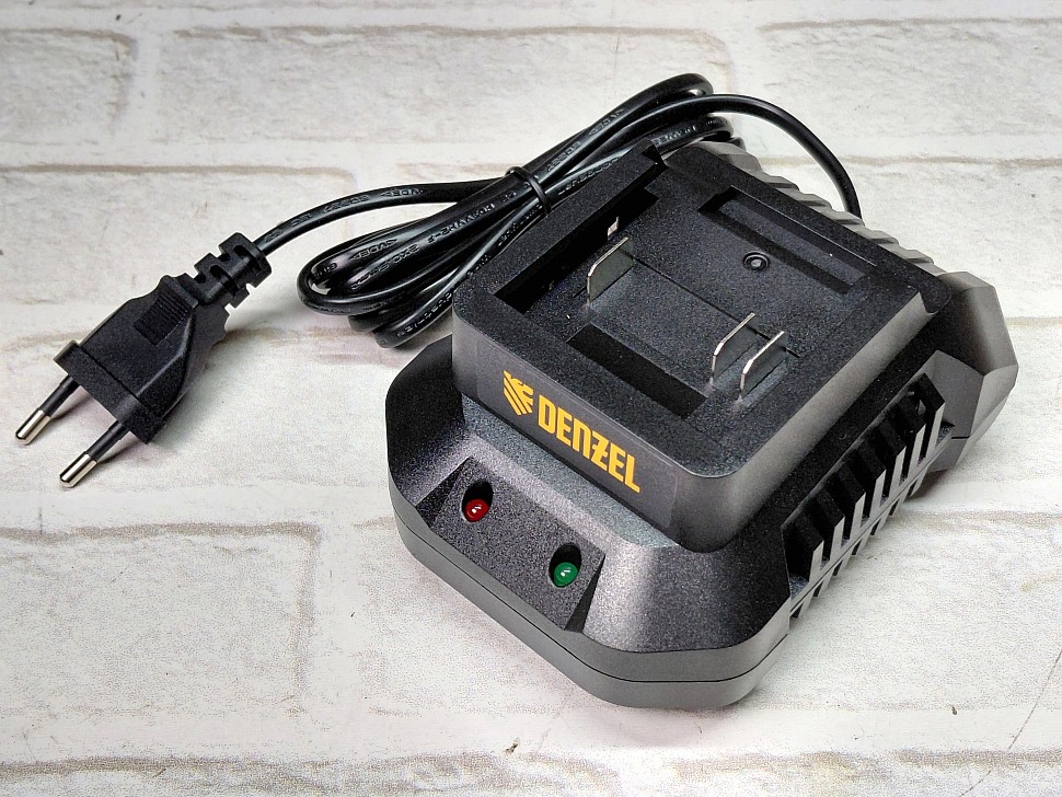 Зарядную станцию мощностью 2А и аккумуляторную батарею Li-ion на 20В емкостью 2Ач.