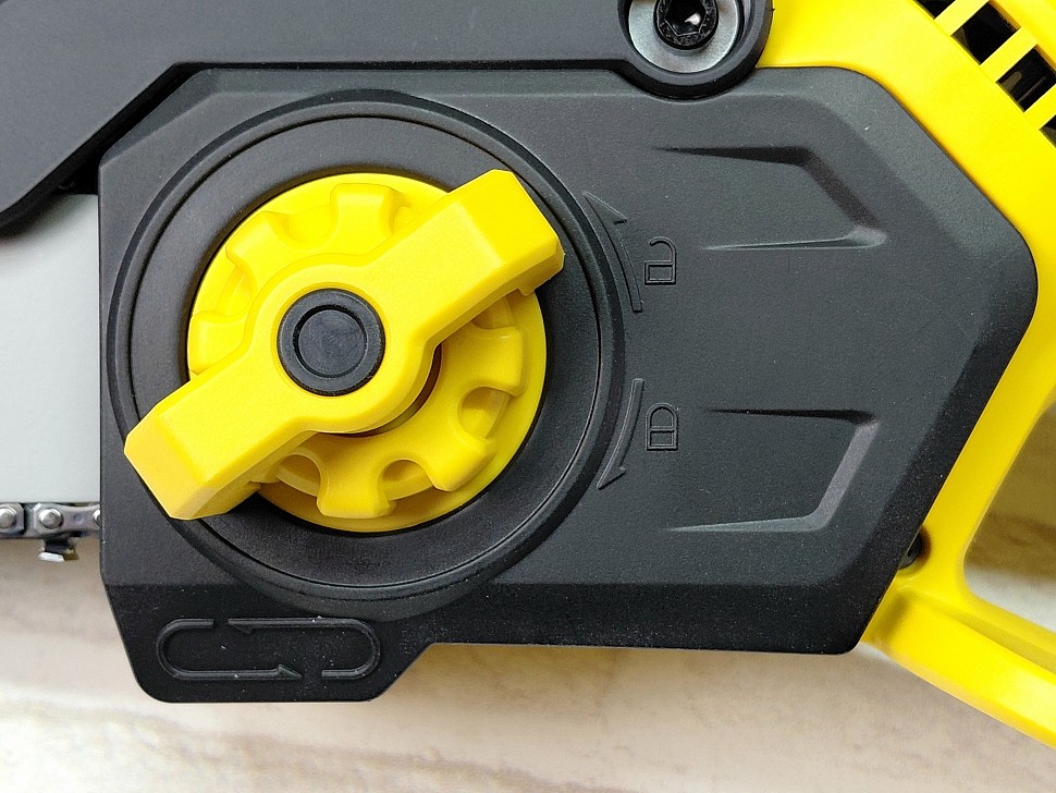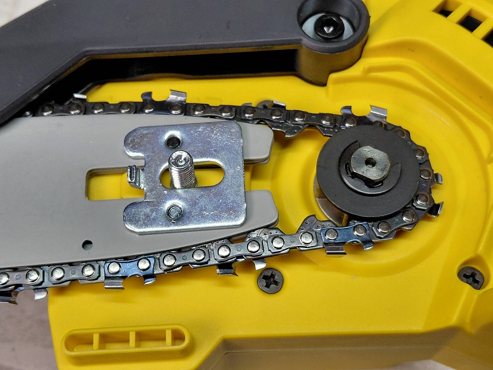 Ручной механизм натяжки цепи без использования стороннего инструмента.
