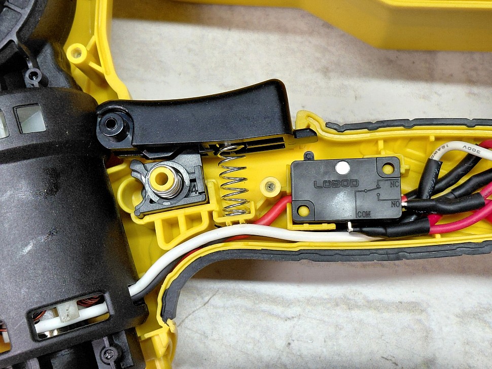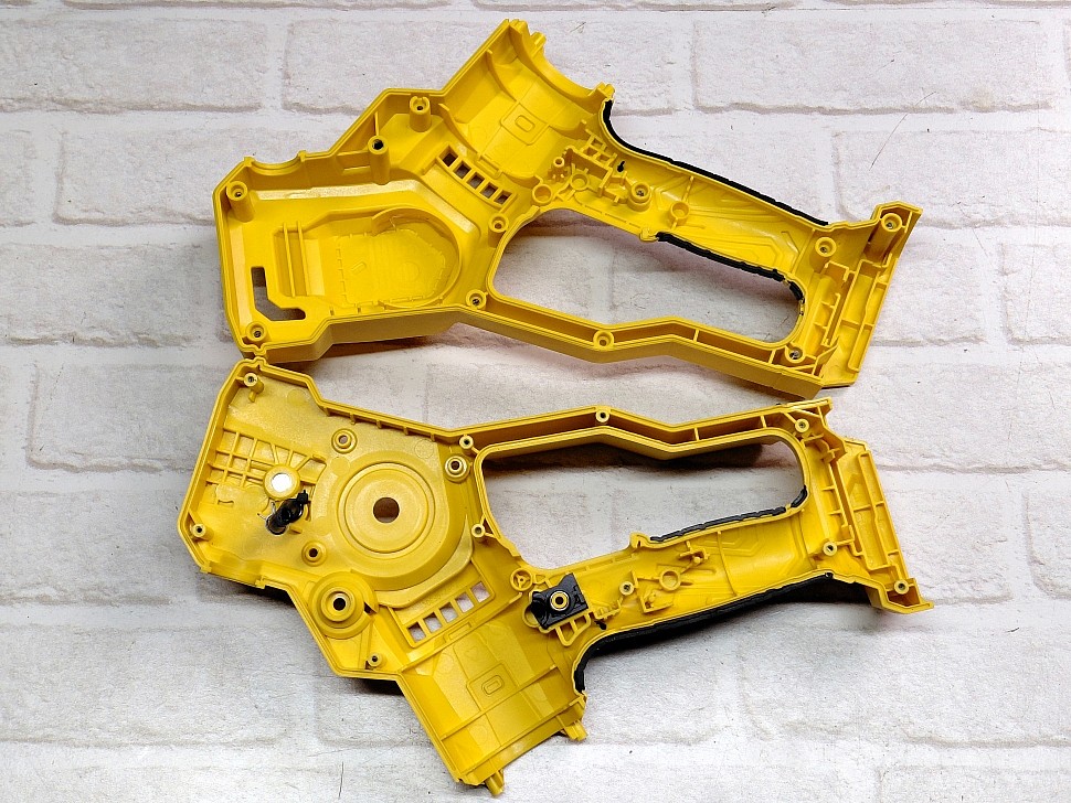 Корпус полностью пластиковый, резиновая вставка в районе рукоятки.