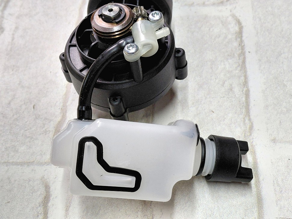 Масло насос с приводными металлическими шестернями, смазаны консистентной смазкой. Шланг подачи масла на шину через корпус.