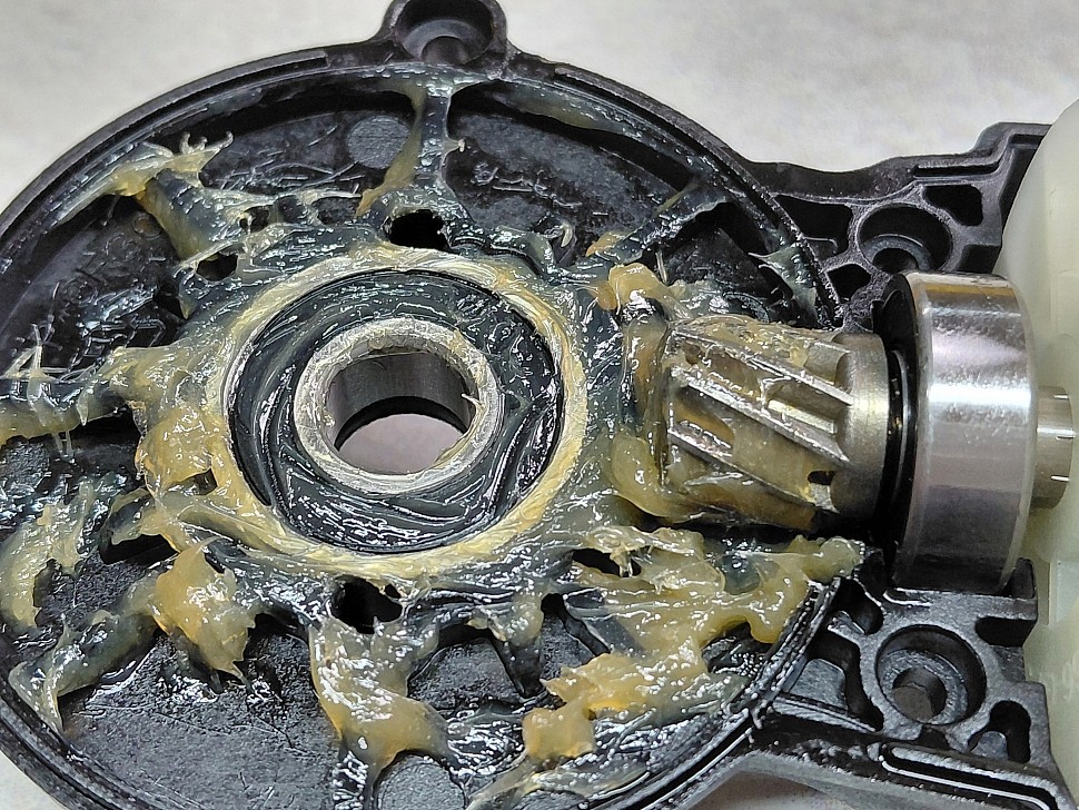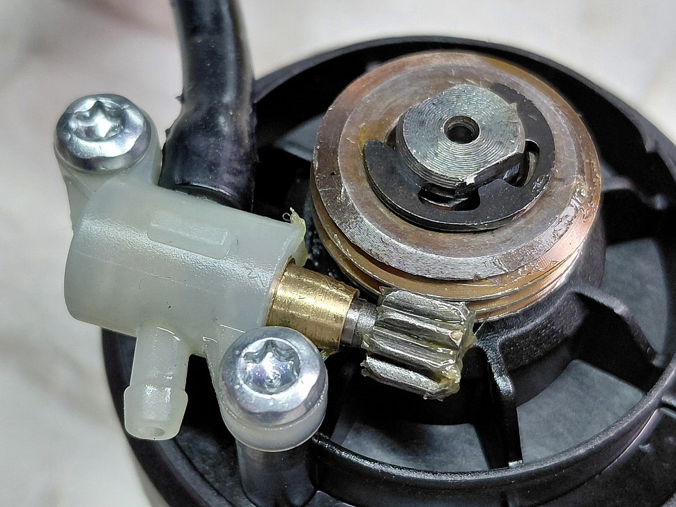 Главная пара редуктора металлическая, обильна смазана консистентной смазкой. Ось редуктора на закрытых подшипниках.