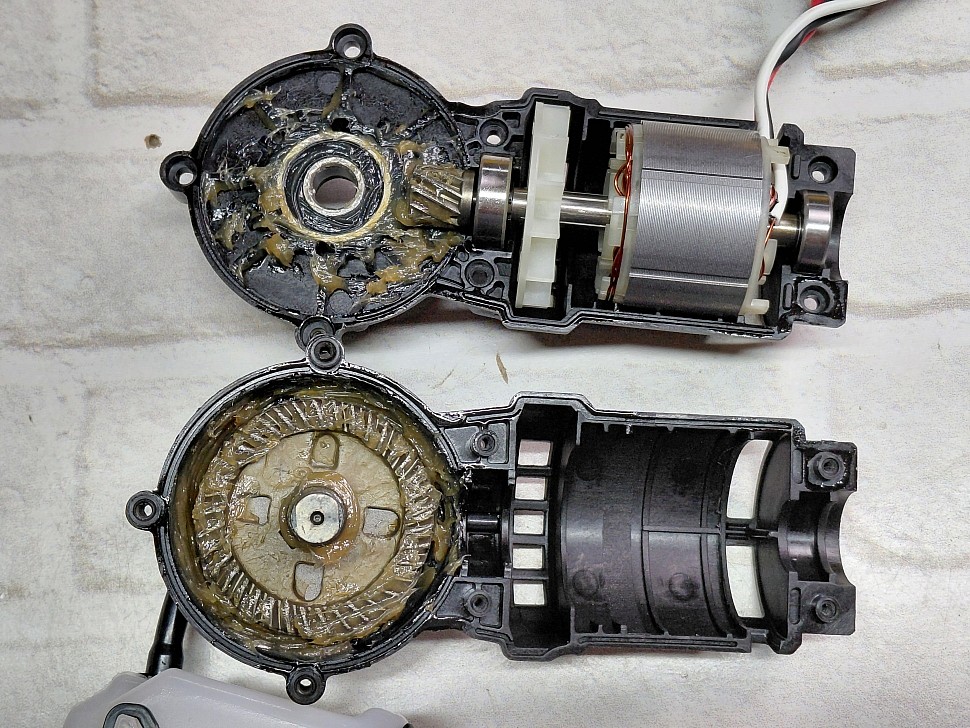 Бесщёточный мотор и редуктор в одном общем корпусе.