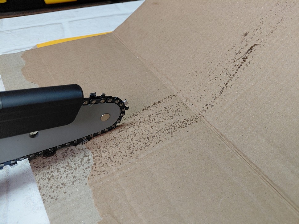 Взять лист бумаги/картона и включив пилу прогнать масло по системе до появления разбрызгивания капель.