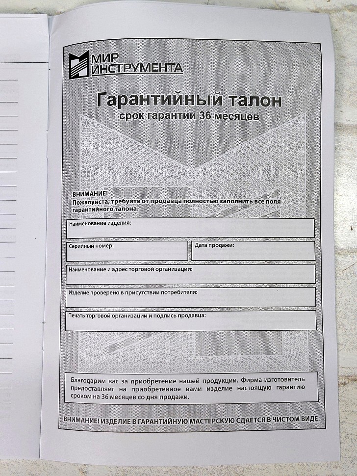 Руководство по эксплуатации полностью на русском языке, на последних страницах гарантийный талон на 36 месяцев.