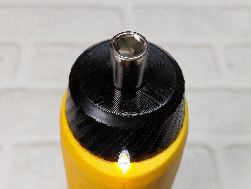 Патрон HEX 1/4" с магнитом, для удержания биты и удлинителя. Встроенная LED подсветка рабочей зоны.