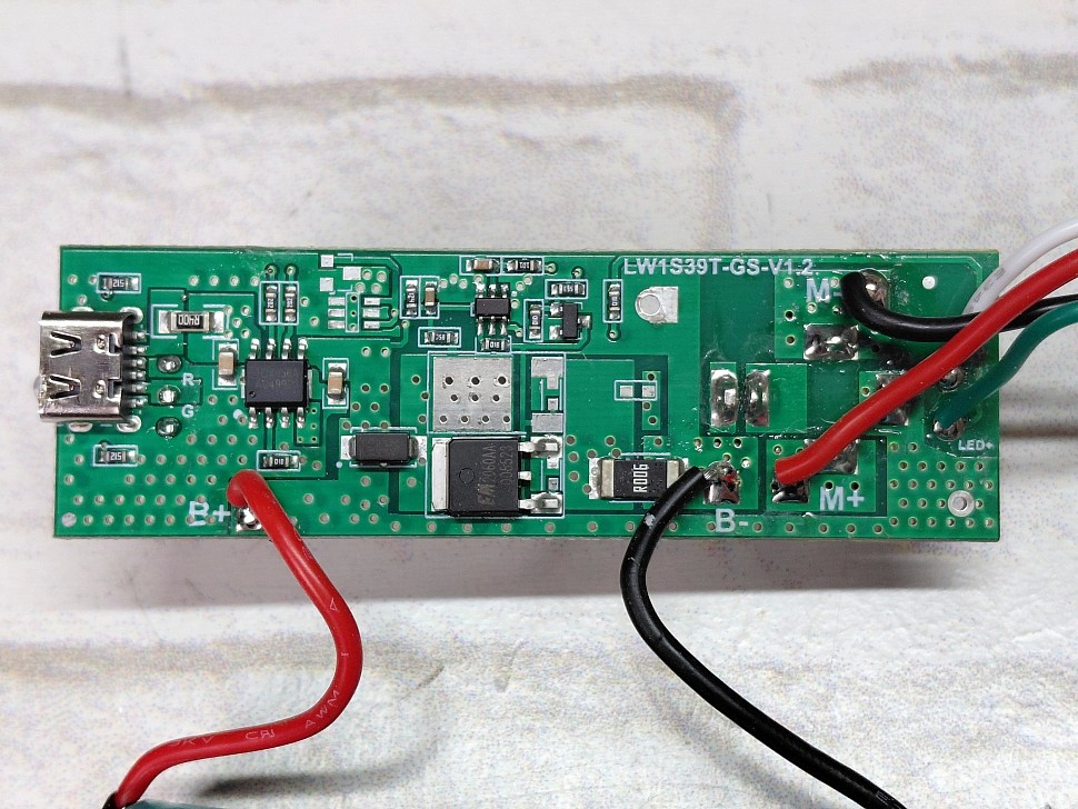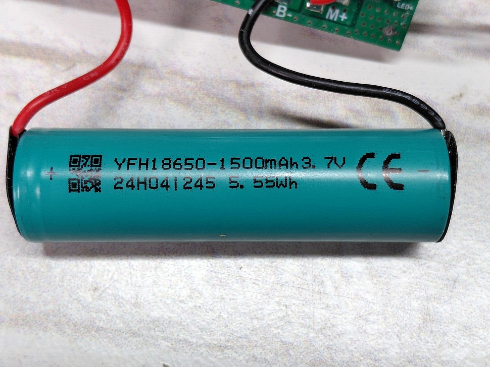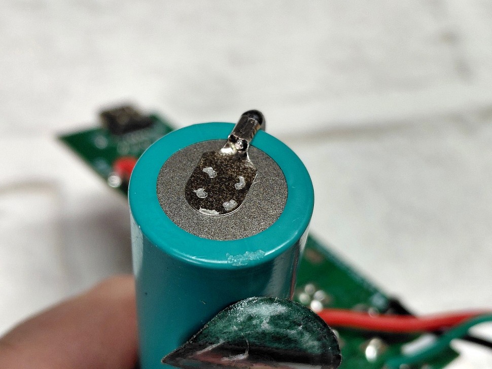 Установлен аккумулятор на 1500мАч, контакты закреплены на четырех точечную сварку.