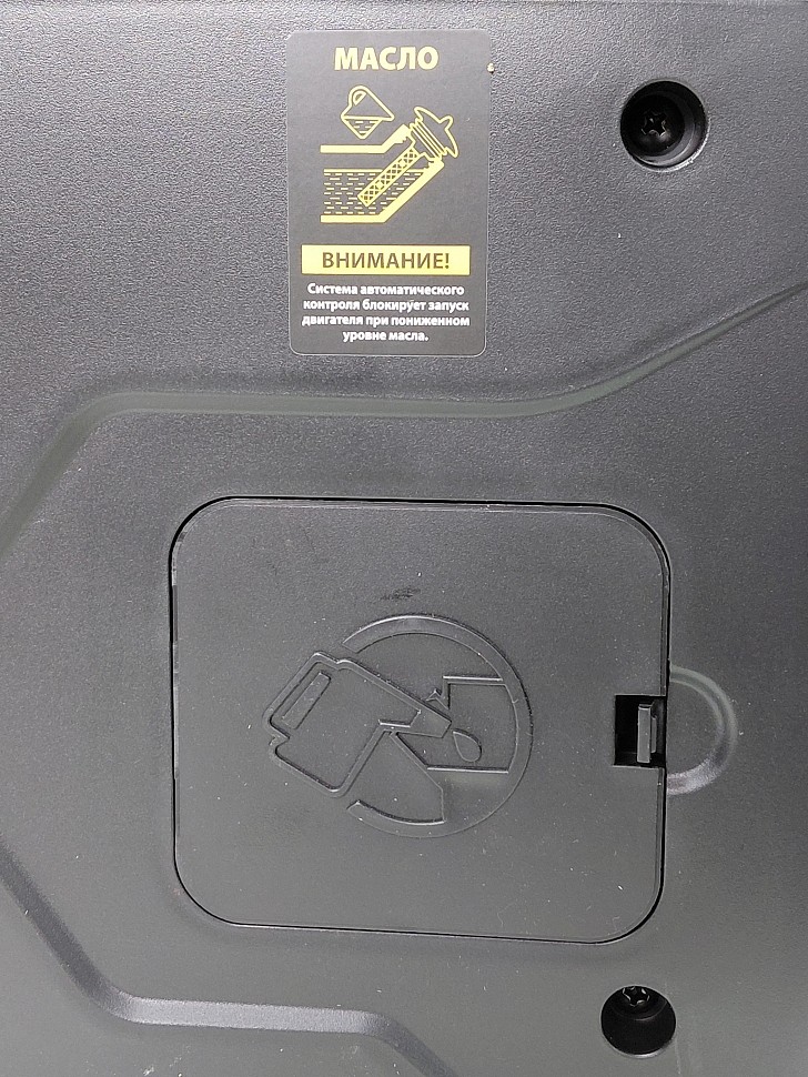 Со стороны ручного стартера крышка доступа к масленому шупу.
