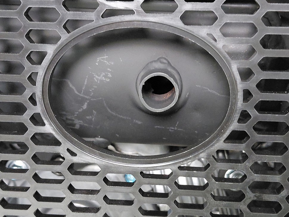 С задней стороны расположилась выхлопная система с глушителем. Стенка имеет форму сетки для лучшего теплоотвода и вентиляции.