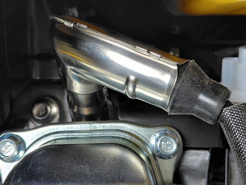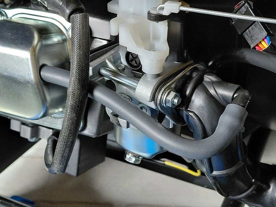 Компактный размер корпуса требует плотной установки всех узлов и агрегатов. Из клапанной крышки выходит шланг-сапун, идущий к небольшому впускному патрубку. Который непосредственно одно стороной соединён с корпусом воздушного фильтра, а другой с карбюратором.