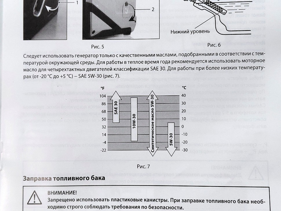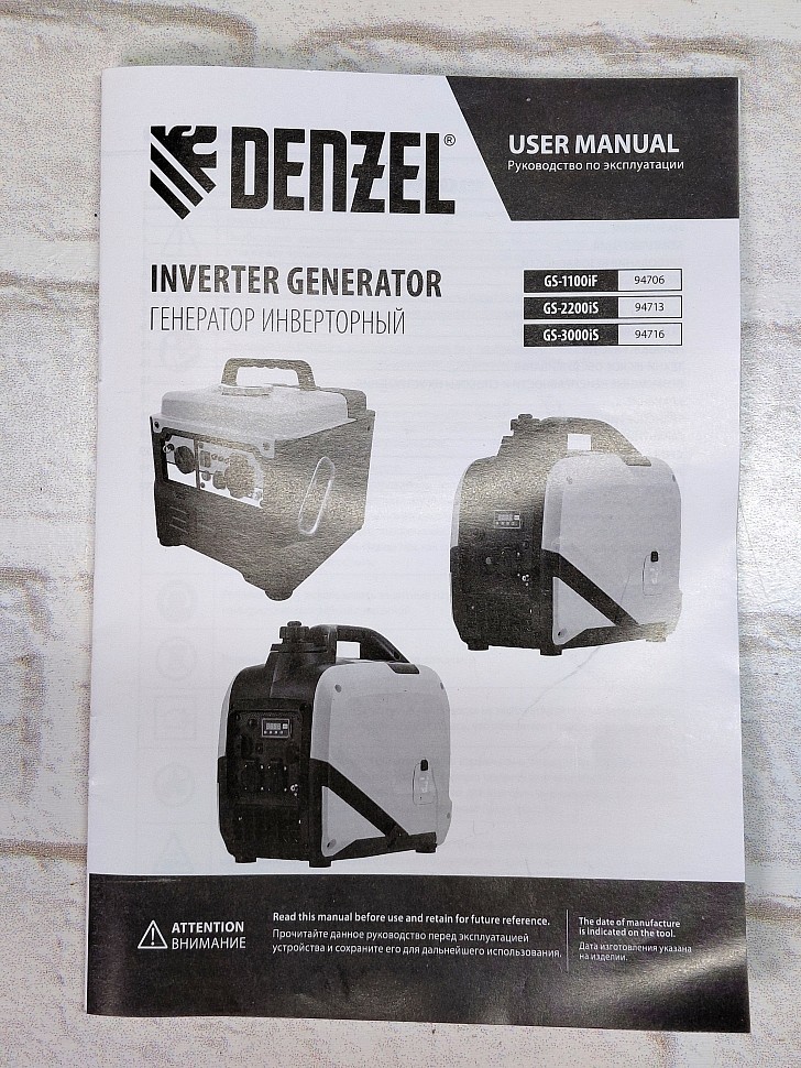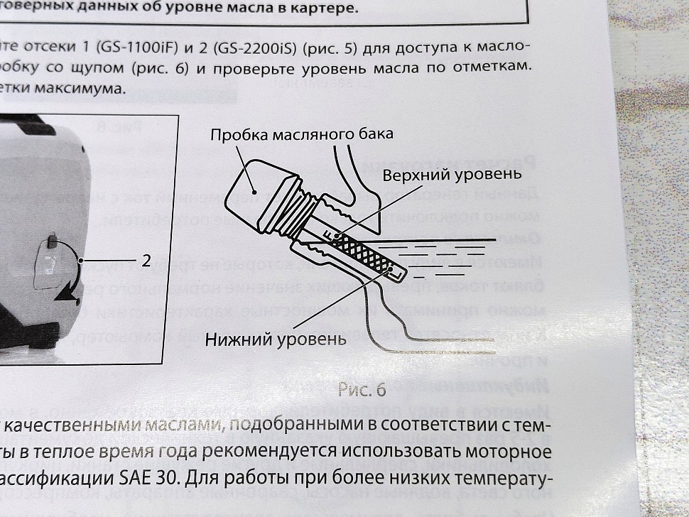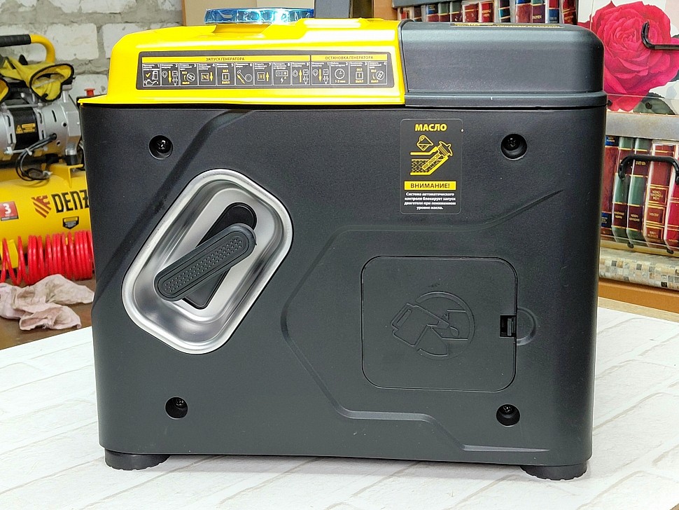 Перед первым запуском инверторного генератора Denzel GS-1100iF обязательно нужно залить моторное масло, потребуется 0.3л. Требование к маслу указаны в инструкции по эксплуатации. Подойдёт любое современное синтетическое моторное масло 5W30 с любыми допусками (А3/В4, С3, GF-6A и т.д.).
