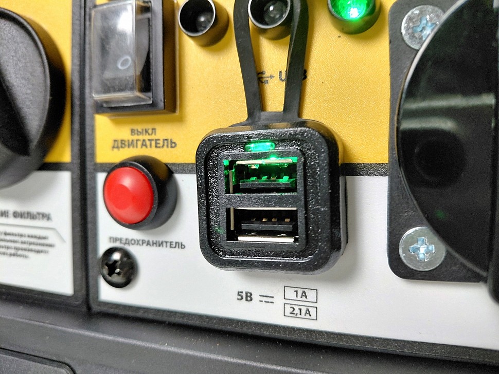 Во время работы горит индикация готовности к работе генератора и дополнительная на USB розетке.