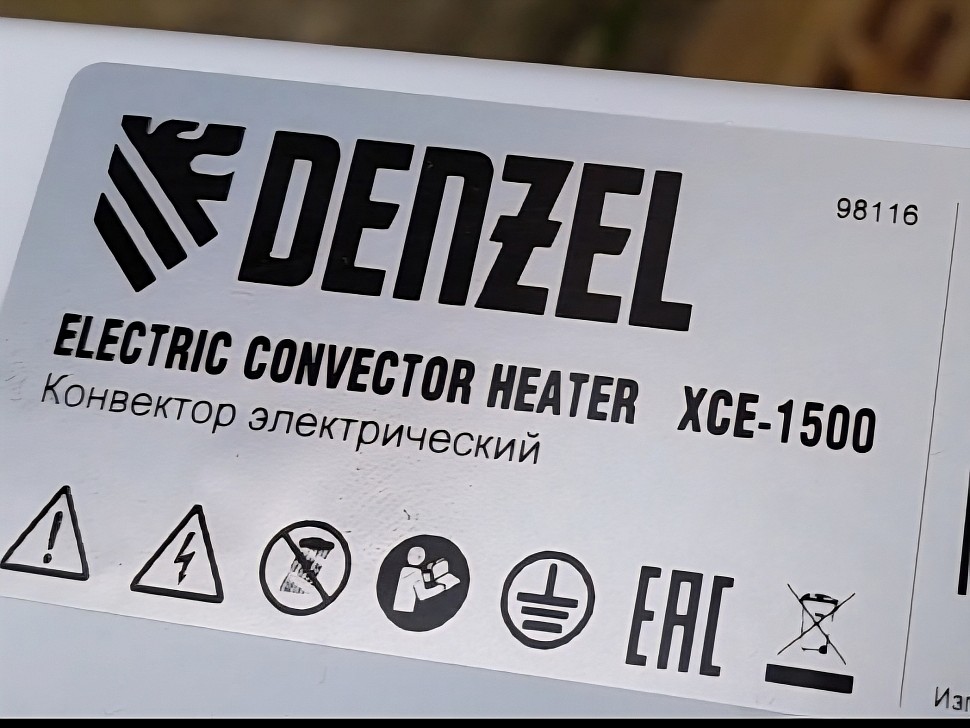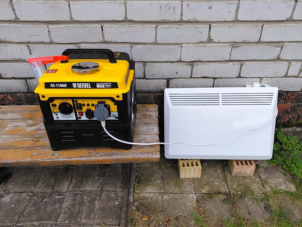 Для тестовой нагрузки был взят электрический конвектор Denzel XCE-1500 работающий в двух режимах 750/1500Вт. Нам потребуется первый режим на 750Вт, что составит 75% нагрузки на генератор.