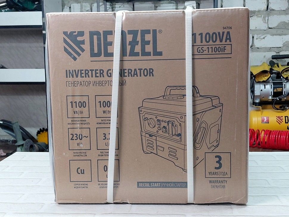 Инверторный генератор Denzel GS-1100iF поставляется в картонной коробке.