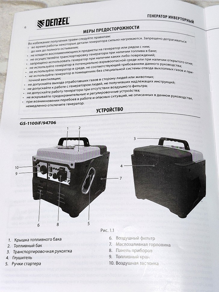 Инверторный генератор Denzel GS-1100iF отлично подойдёт для использования как резервный источник питания в частном доме при отключении электричества или в походе. При этом обеспечивая экономию топлива, сниженный уровень шума и компактность.