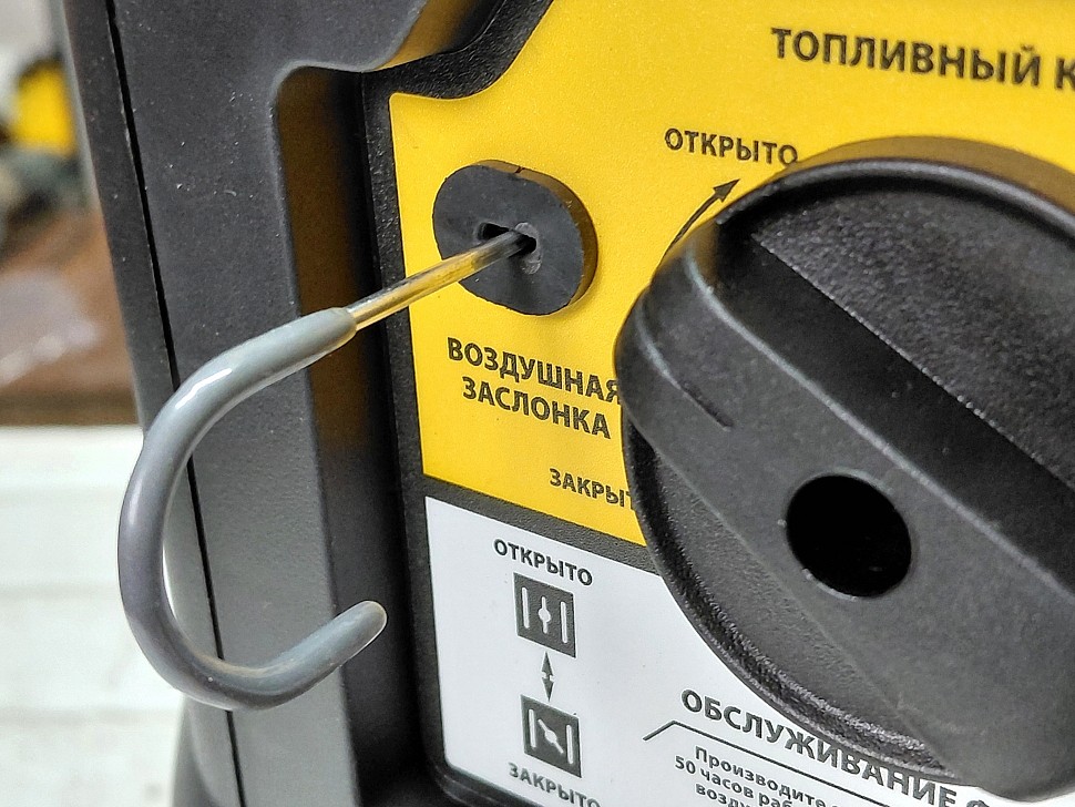 Управление воздушной заслонкой происходит вытягиванием и задвиганием рычага. Задвинутый рычаг, заслонка открыта. При запуске, рычаг вытягиваем, заслонка закрывается.