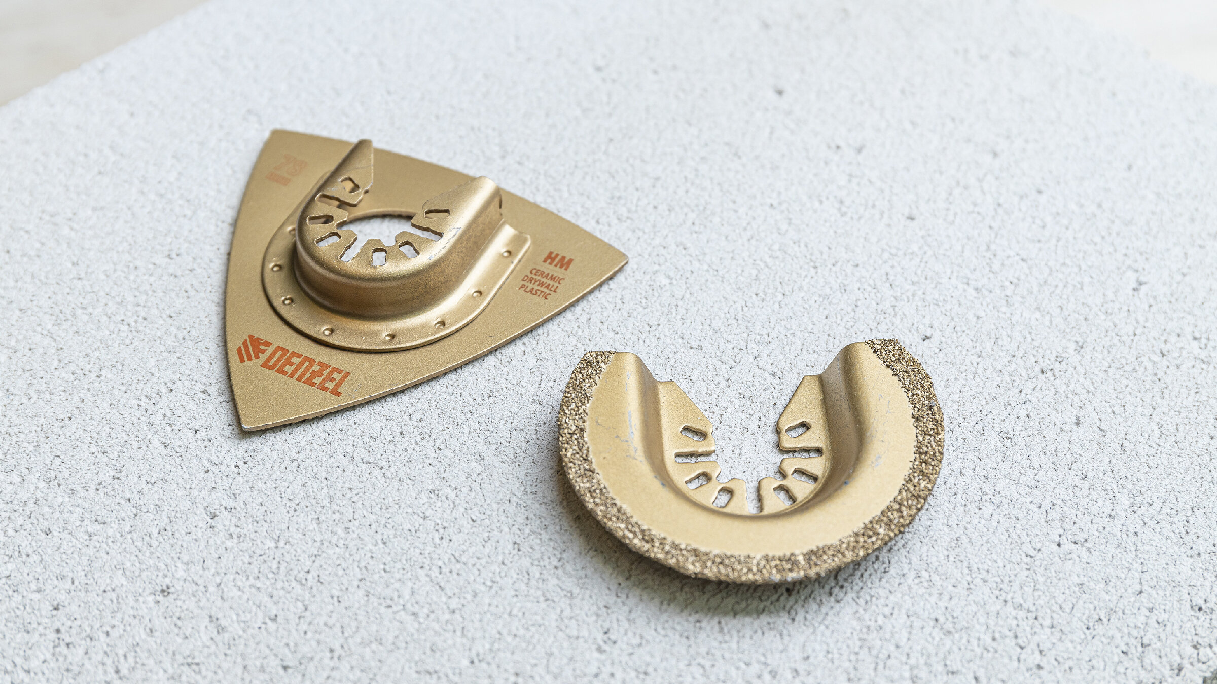 Не стоит забывать и про шлифовальные насадки. Данный тип оснастки, как правило, выполнен в форме треугольника или круга, снизу чаще всего покрывается алмазной крошкой. Применяется для грубой шлифовки твердых поверхностей.