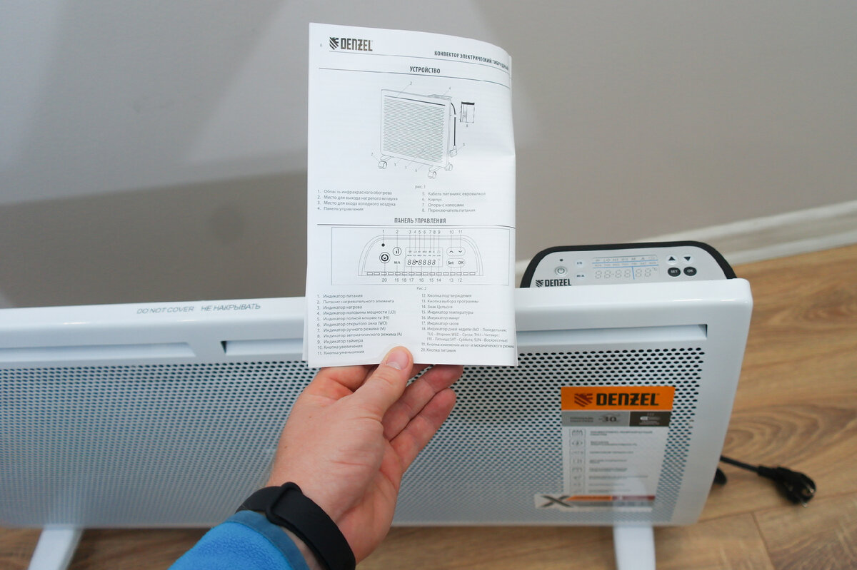 Конвектор гибридный электрический HybridX-2000 – довольно функциональный обогреватель, с двойной системой нагрева: конвективной и инфракрасной. Настройка включения в определенные дни, автоматическая или ручная работа, датчик «открытого окна» – все это делает конвектор Denzel интересным и конкурентоспособным устройством на рынке. Единственное с чем рекомендую ознакомиться, так это со штатной инструкцией, ведь в обогреватель заложено очень много функций.