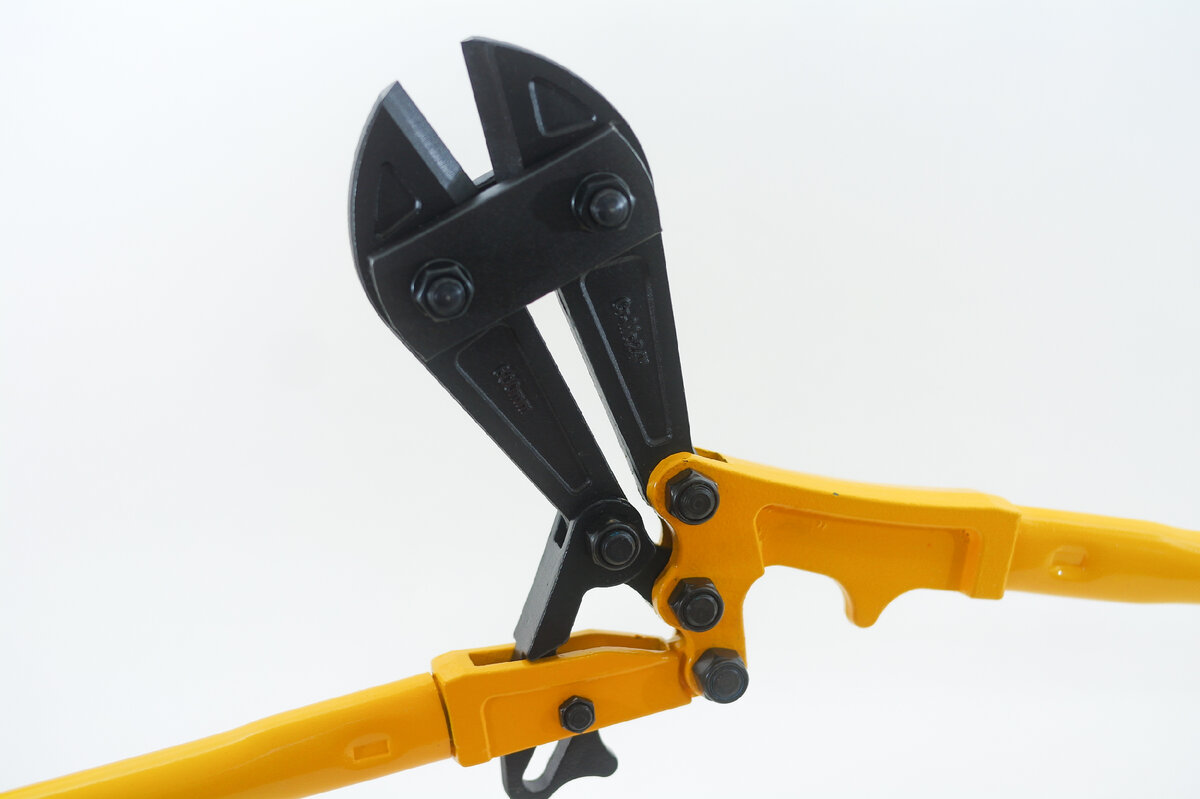 Болторез имеет удобные, эргономичные ручки и дополнительный рычаг в конструкции. Режущая часть и механизм цельнометаллические, а вот рукоятки пустотелые. Общий вес – 2.69кг.