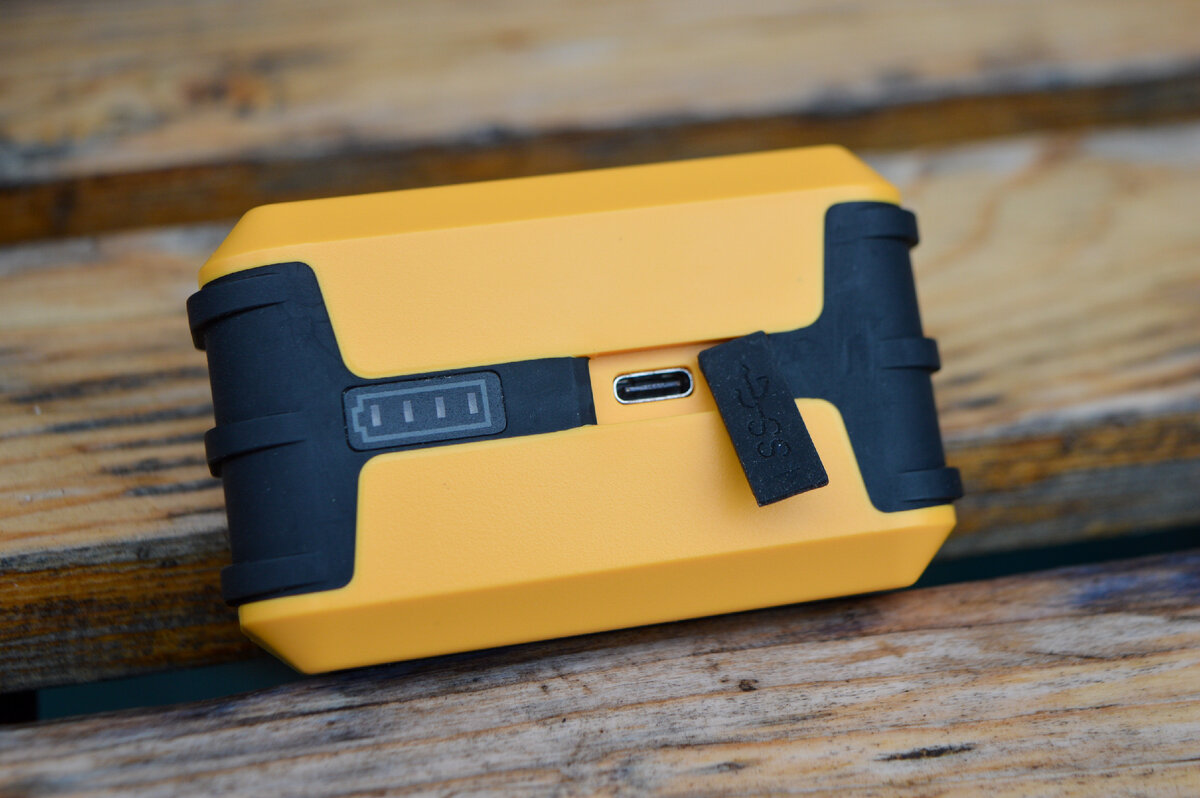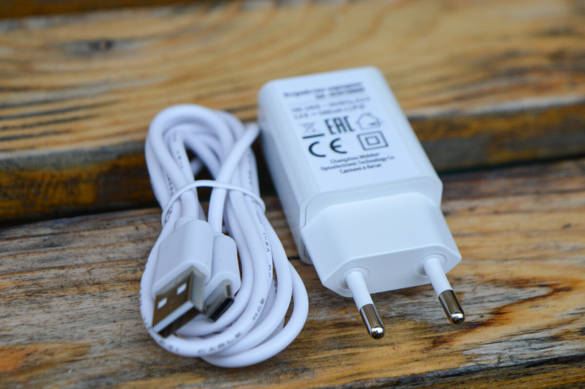 Для заряда аккумулятора используется внешнее зарядное устройство. Провод питания с пластиковой мягкой изоляцией и разъемом USB Type-C на конце. Заряд аккумулятора не будет проблемой, ведь разъем довольно широко распространен и используется в большинстве смартфонов.