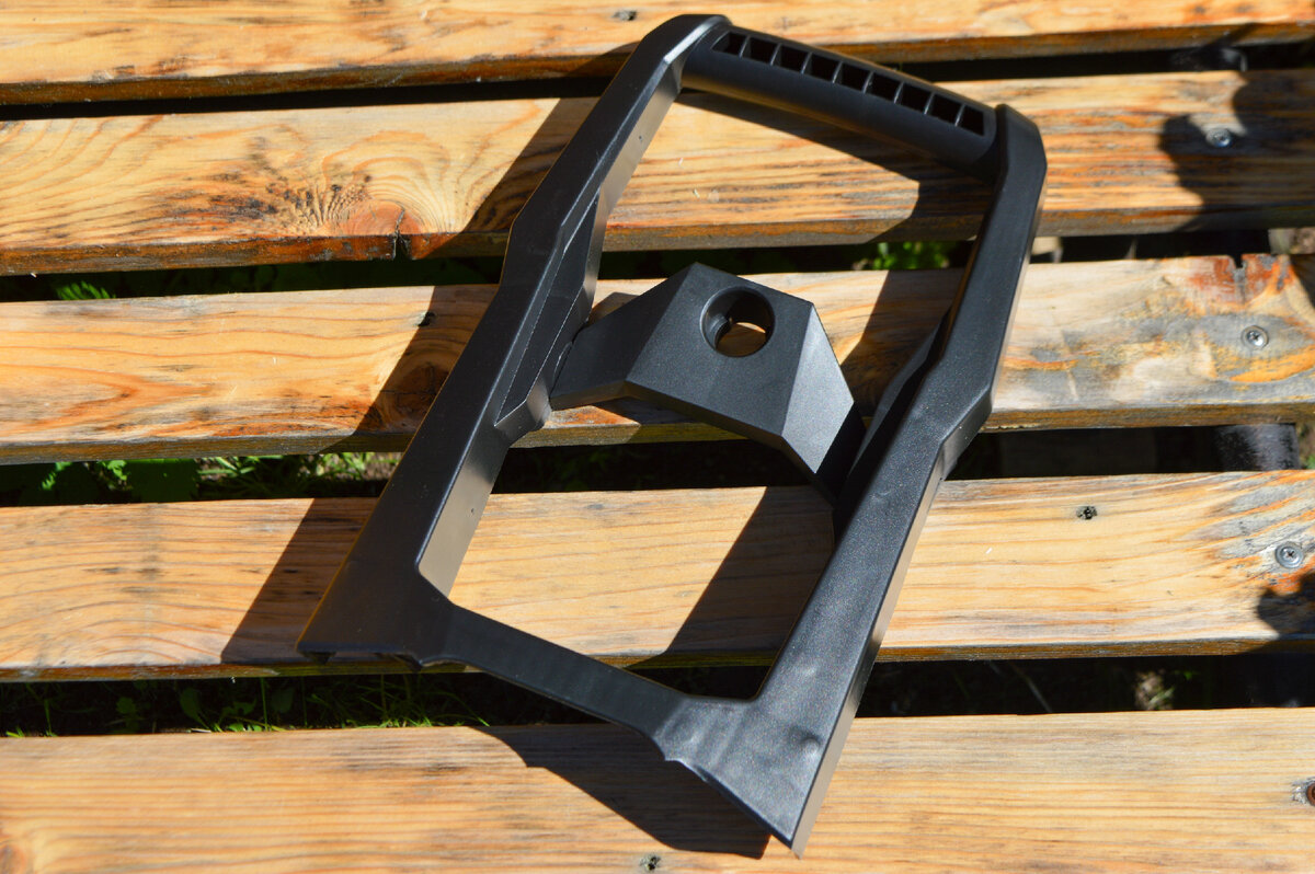 Мойка оборудована ручкой из пластика, которая надежно крепится к корпусу двумя саморезами.
