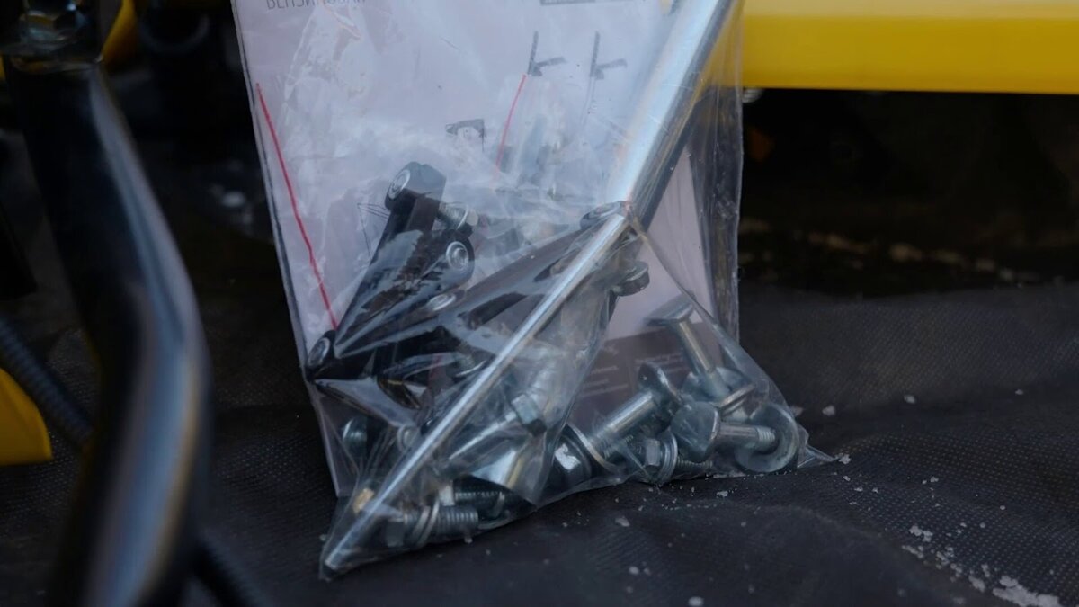 К ковшу агрегата прикручиваем полозья, чтобы улучшить его скольжение. Устанавливать их можно на разной высоте, в зависимости от особенностей очищаемой от снега поверхности. Полозья двухсторонние, при износе одной стороны их можно снять, перевернуть и использовать другую сторону.