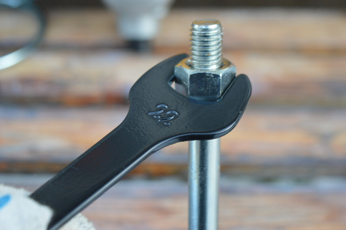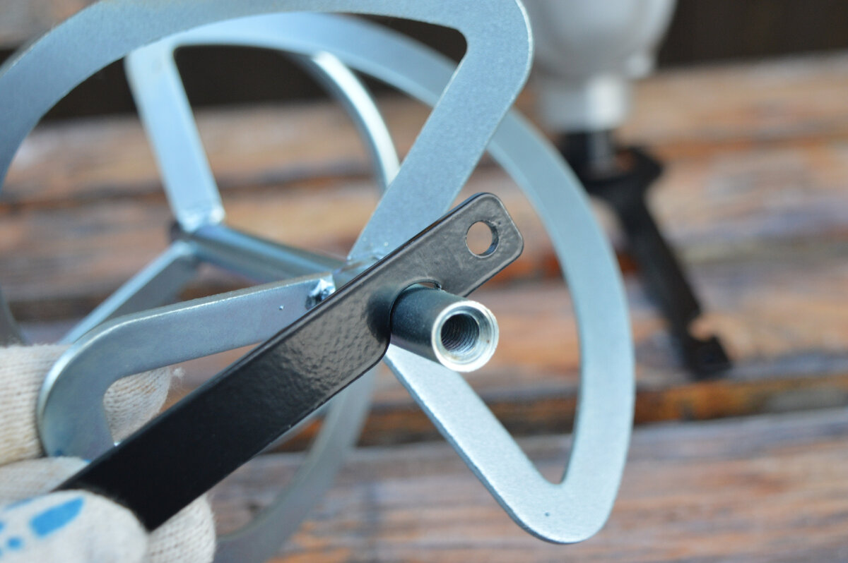 На шнек устанавливается удлинительная штанга и уже в нее венчик. Сборка не займет много времени, но для надежности фиксации следует использовать комплектный гаечный ключ.