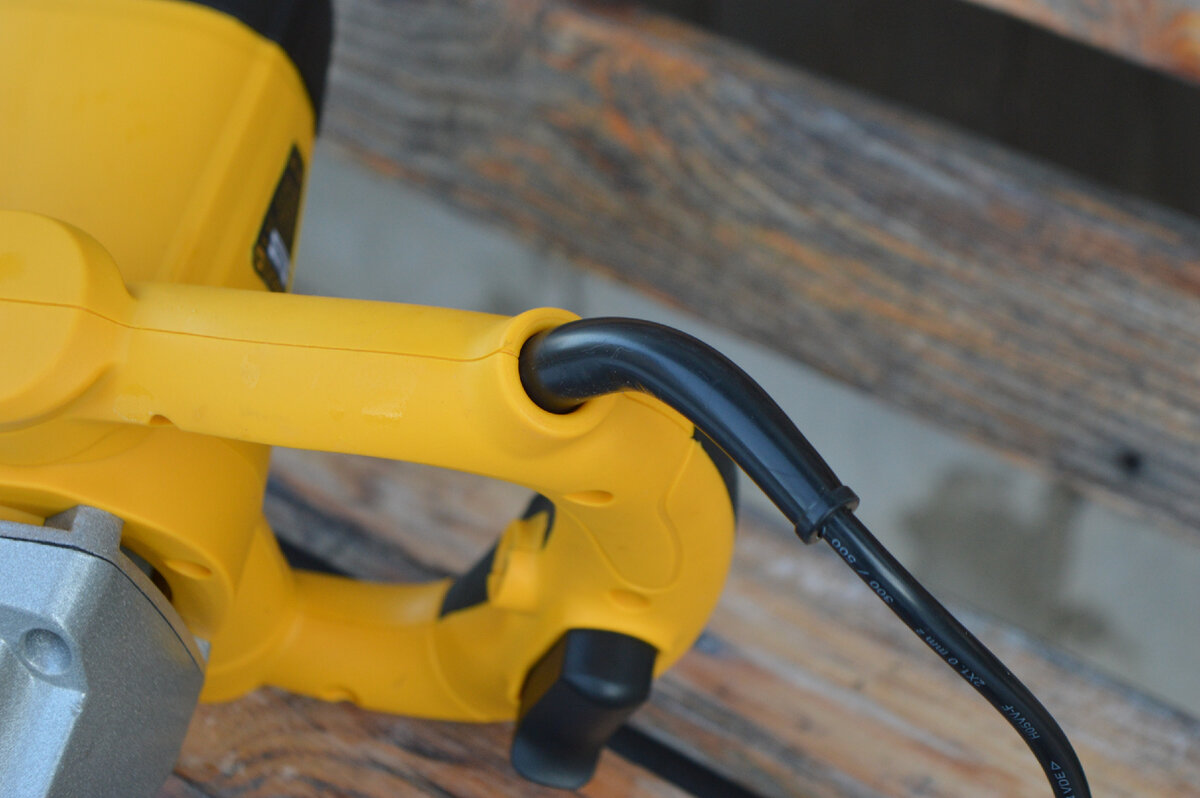 С торца одной из ручек входит кабель питания. Длина провода 3 метра. Резиновая изоляция позволяет работать при отрицательных температурах без ущерба инструменту. Для защиты от случайных перегибов установлен защитный кембрик у основания ручки.