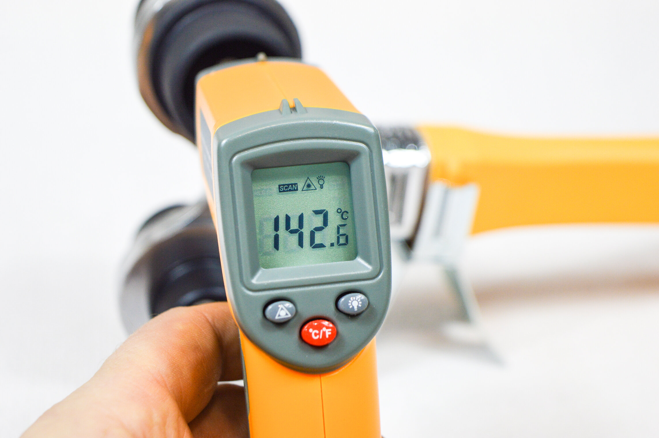 Нагрев не моментальный, и между переключениями на различную температуру приходится ждать несколько секунд. Но, это я не считаю минусом, так как пока аппарат нагревается на нужную температуру, можно проводить подготовительные работы по обрезке трубы. Произвел замер температуры на всех температурных режимах выделенных производителем в цифры. Еще раз повторюсь, что переключение плавное и выбрать можно любую из представленных. Считаю, что показания вполне соответствуют действительности и особой корректировки не требуют.
