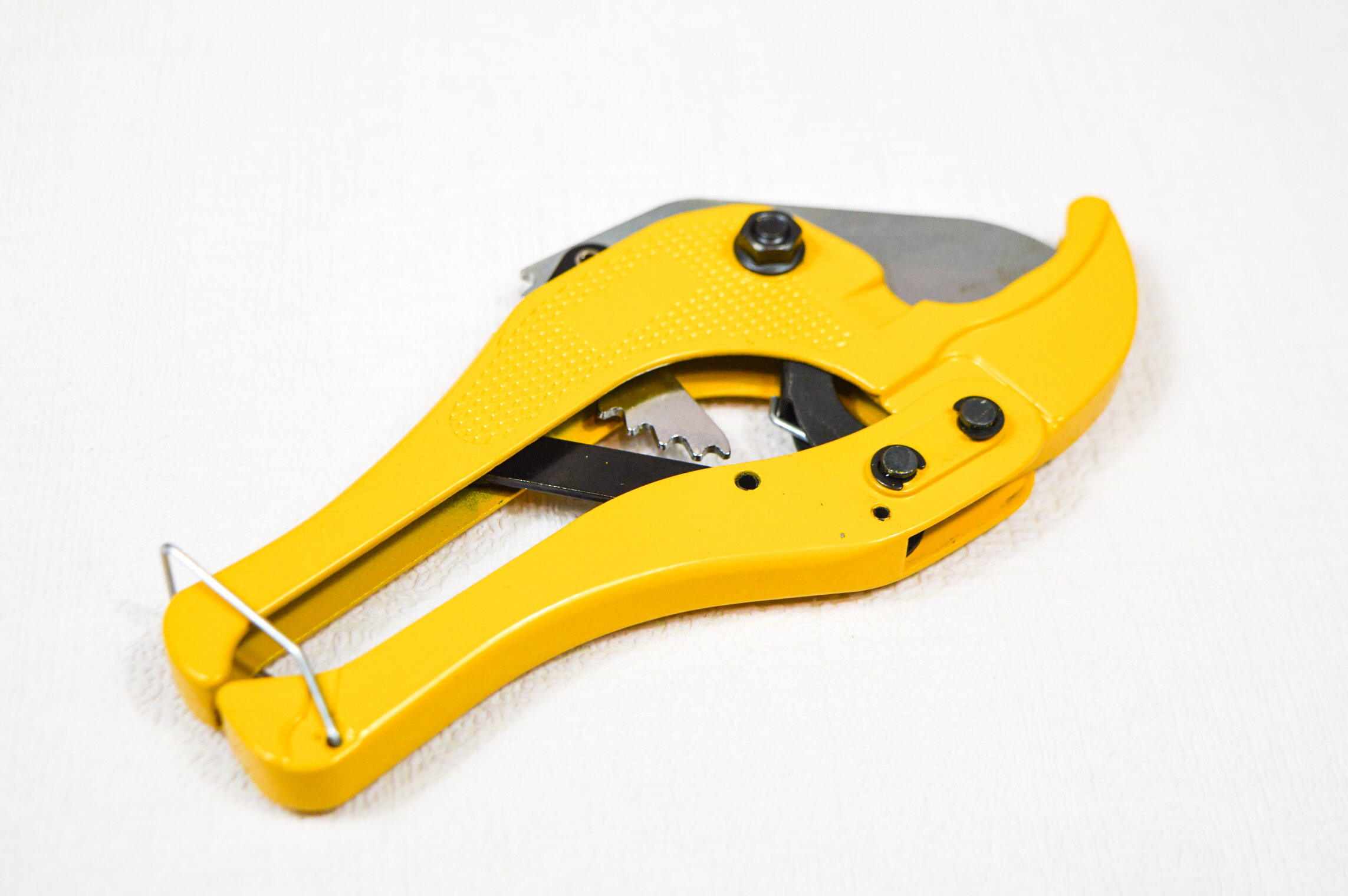 Ножницы для резки труб полностью выполнены из металла. В принципе они предназначены на трубы диаметром 40 мм и, с легкостью с этим справляются. Резка трубы проходит ступенчато, после каждого сжатия нож блокируется от раскрытия. В сложенном состоянии ручки удерживаются дополнительным фиксатором. Как работают ножницы, можно посмотреть в видео чуть ниже. В подвижных частях ножниц присутствует некоторое количество смазки. Ножницы удобно лежат в мужской руке, но норовят выпасть или соскользнуть. Рез трубы ровный, без заломов и сколов.