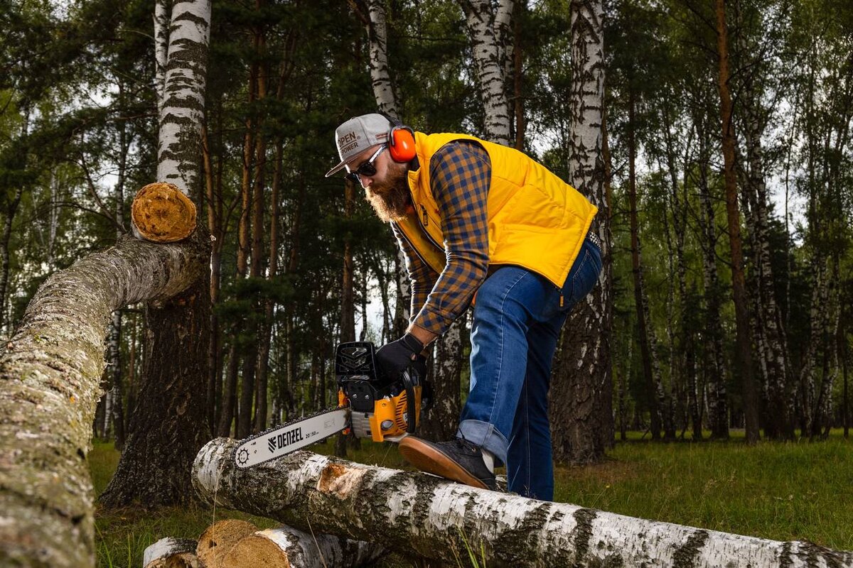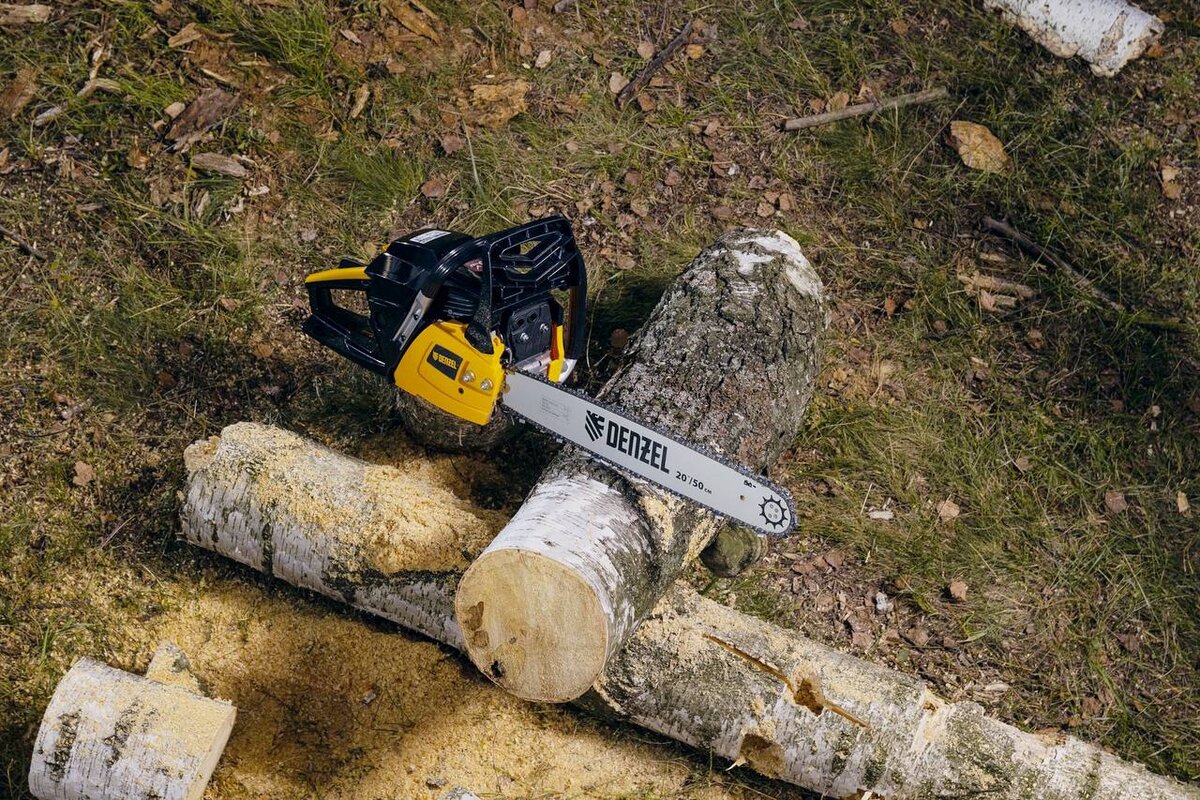 Оптимальным вариантом для распиловки большого объема бревен на открытом воздухе будет бензиновая цепная пила. Так, бензопила Denzel DGS-5820 легко справится с древесиной мягких и твердых пород. Инструмент отлично подходит для интенсивных нагрузок. Цилиндр с хромированным покрытием, коленвал из закаленной стали, свеча зажигания Bosch и облегченный поршень обеспечивают надежность и высокий ресурс.