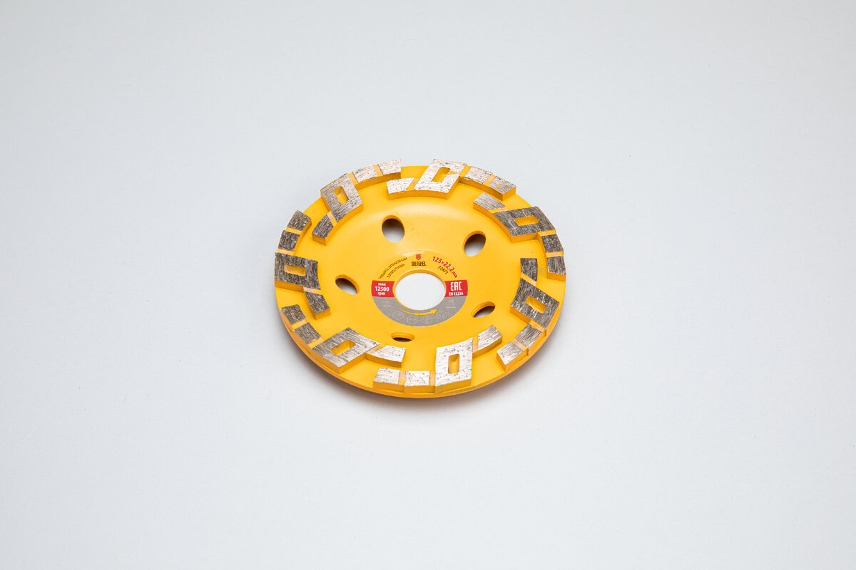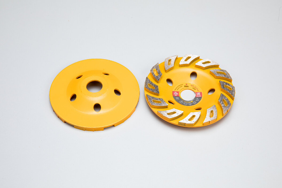 Алмазные зачистные чашки Denzel имеют усовершенствованную форму алмазных сегментов: «Турбо», «Бриллиант», «Волна», «Агрессор», что способствует более интенсивному выбросу шлама и охлаждению чашки во время работы.