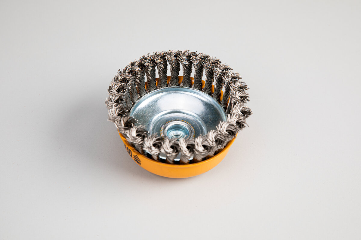 Щетки используются для зачистки металла, дерева и других материалов. Самые мягкие – это щетки из нейлона. Витые щетки более эффективные при обработке металла. Самые агрессивные – крученые щетки. Они подходят даже для обработки сварных швов.