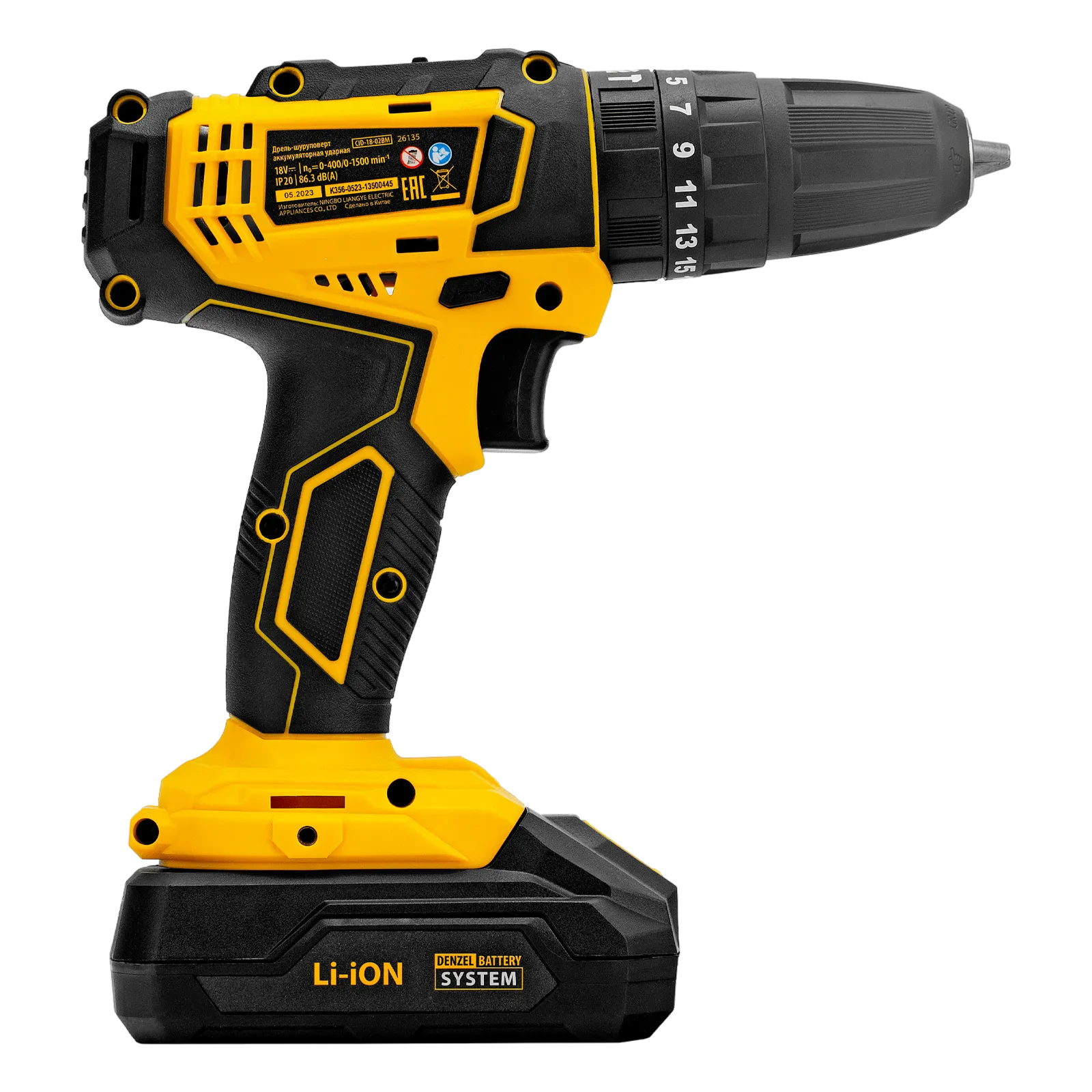 Ударная аккумуляторная дрель-шуруповерт Denzel CID-18-02BM 26135 поставляется с 2 аккумуляторами емкостью 2 А·ч, с рабочим напряжением 18 В. Используется для сверления отверстий, а также для монтажа и демонтажа резьбовых соединений. Инструмент развивает крутящий момент до 30 Н·м. Ударная функция позволяет справляться с перетянутым и прикипевшим крепежом, а также сверлить отверстия в твердых материалах, например, в кирпиче. Максимальный диаметр отверстий в кирпиче составляет 10 мм, в металле — 13 мм, в древесине — 25 мм.;Дрель-шуруповерт работает от аккумулятора с интеллектуальной системой распознавания нагрузки, что обеспечивает высокую продолжительность работы без потери мощности.