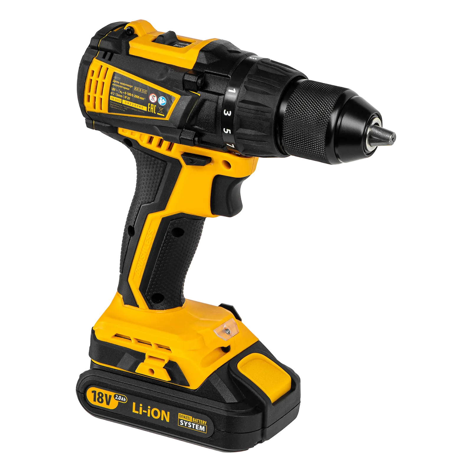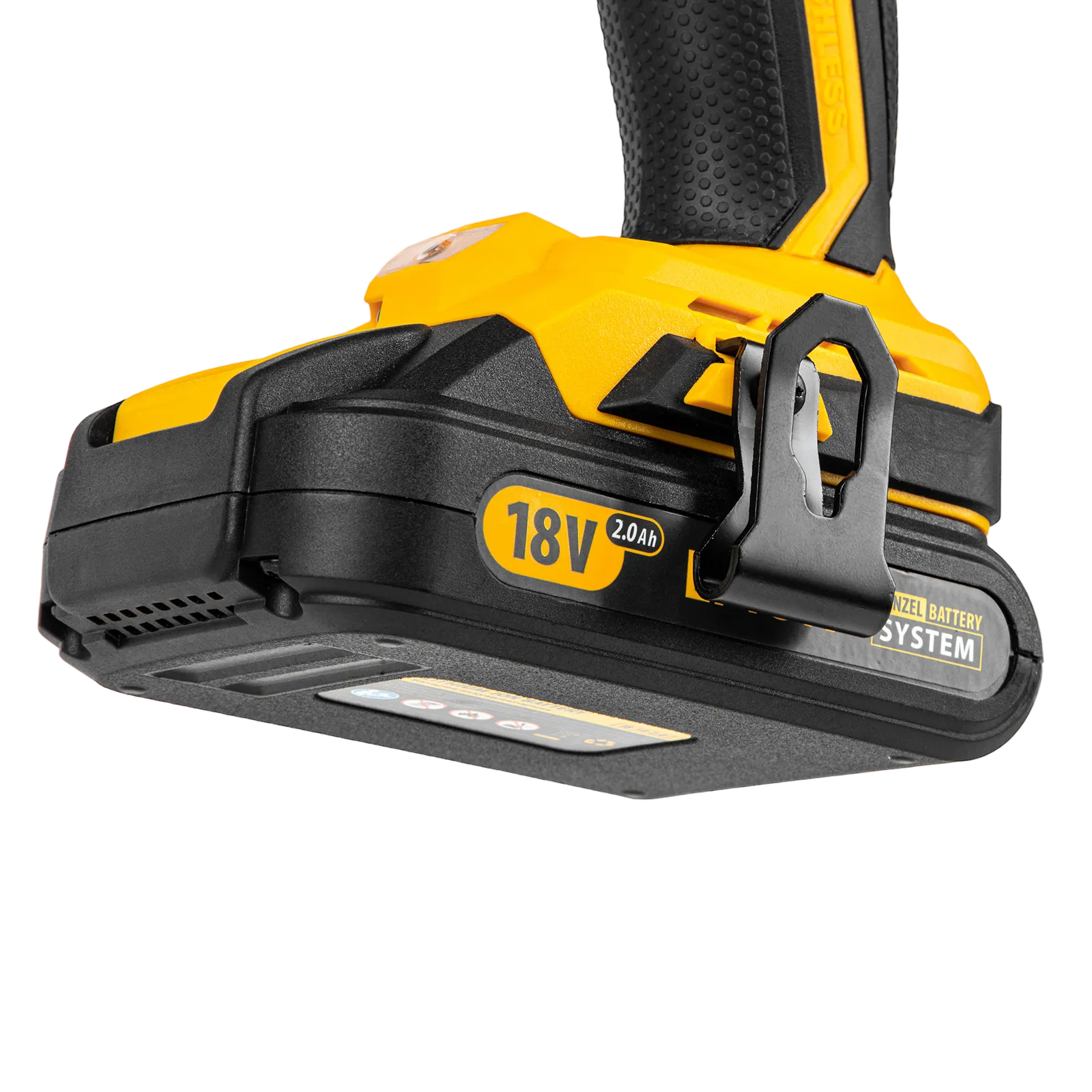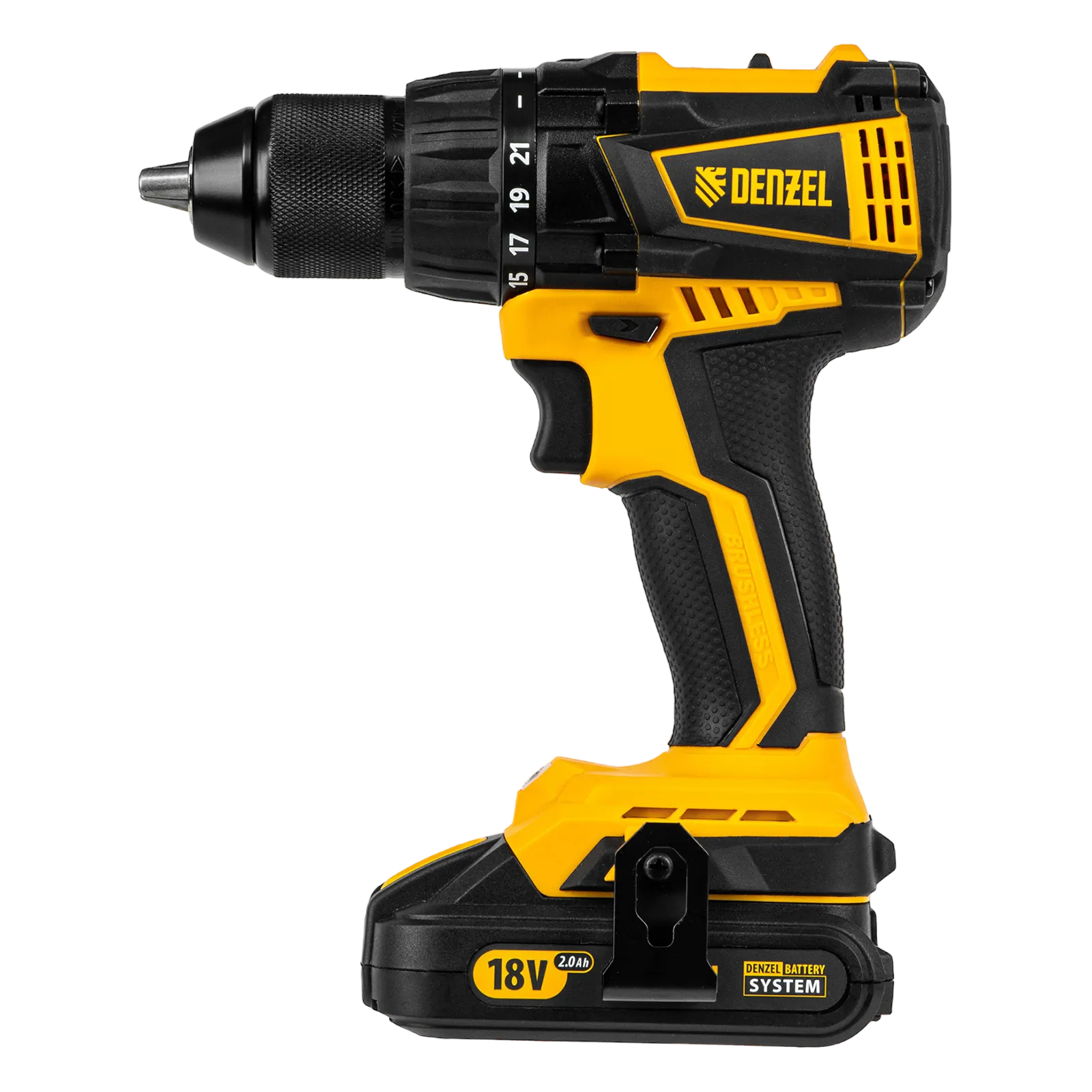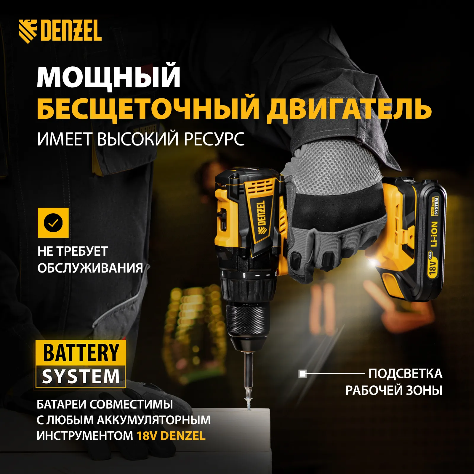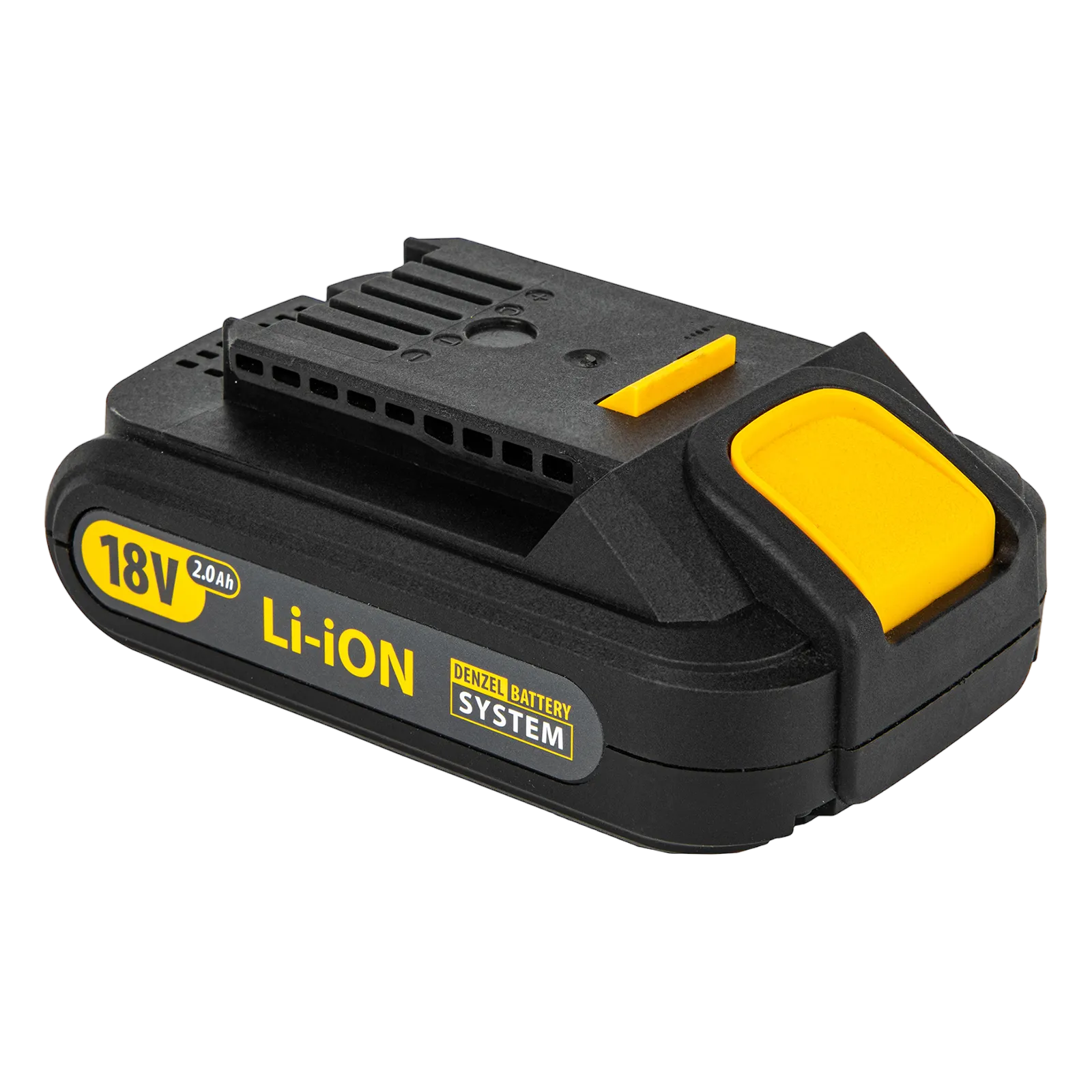 - Универсальность — аккумуляторы 2 Ач Li-ion с интеллектуальной системой распознавания нагрузки совместимы с любым инструментом 18V Denzel battery system.