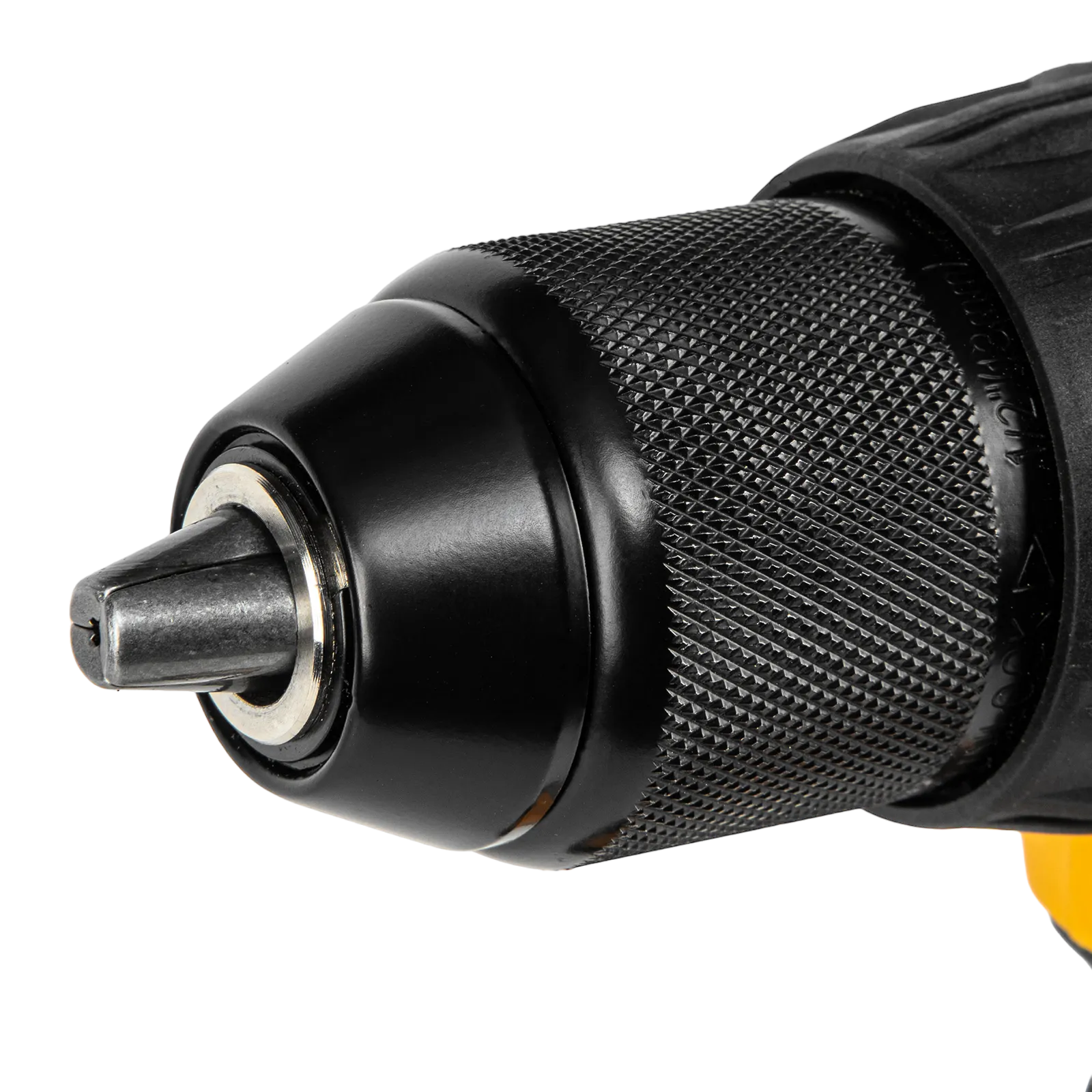 - Легкая замена оснастки — быстрозажимной одномуфтовый металлический патрон в сочетании с функцией блокировки шпинделя позволяет одной рукой устанавливать биту или сверло.