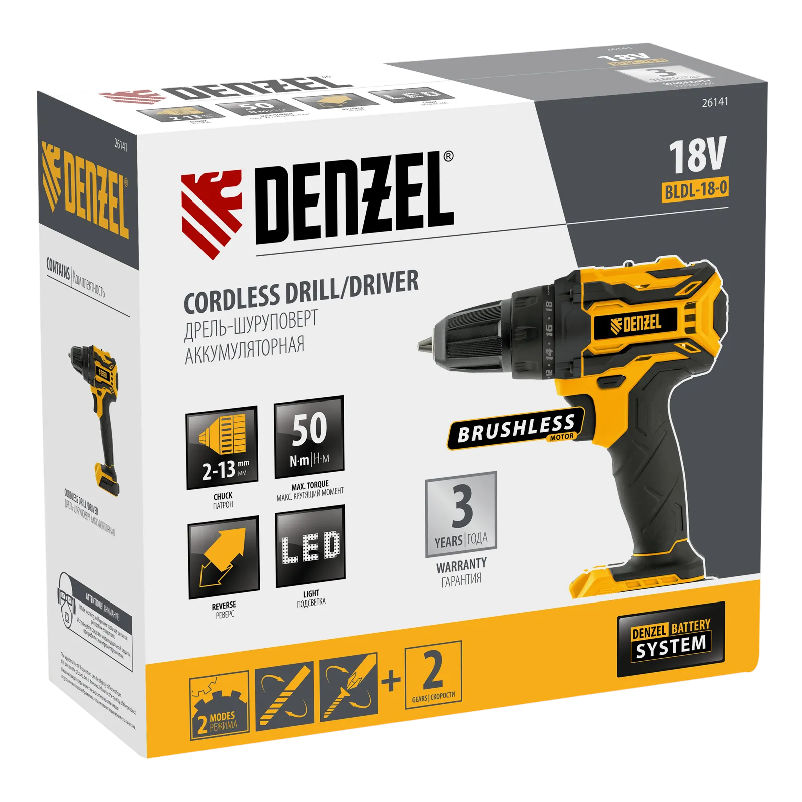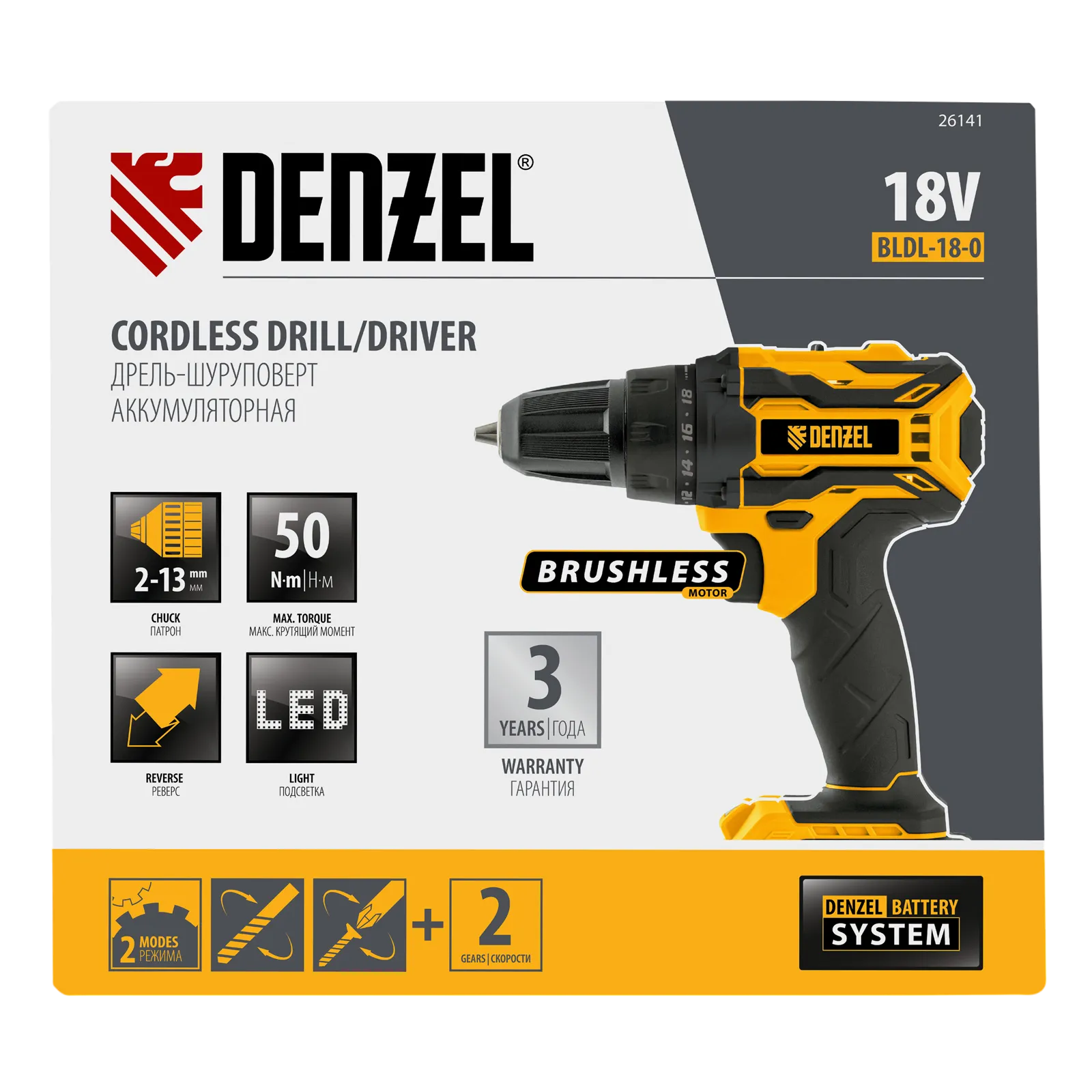Аккумуляторная дрель-шуруповерт Denzel BLDL-18-0 26141 с бесщеточным двигателем предназначена для сверления отверстий, закручивания и откручивания резьбового крепежа. Максимальный диаметр отверстий в древесине составляет 25 мм, в металле — 13 мм. Величина крутящего момента достигает 50 Н·м, что позволяет эффективно решать поставленные задачи.