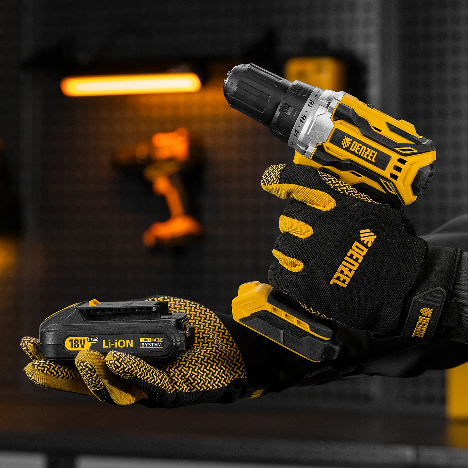 - Универсальность — инструмент совместим с любым Li-Ion аккумулятором и зарядным устройством единой платформы Denzel Battery System 18V.