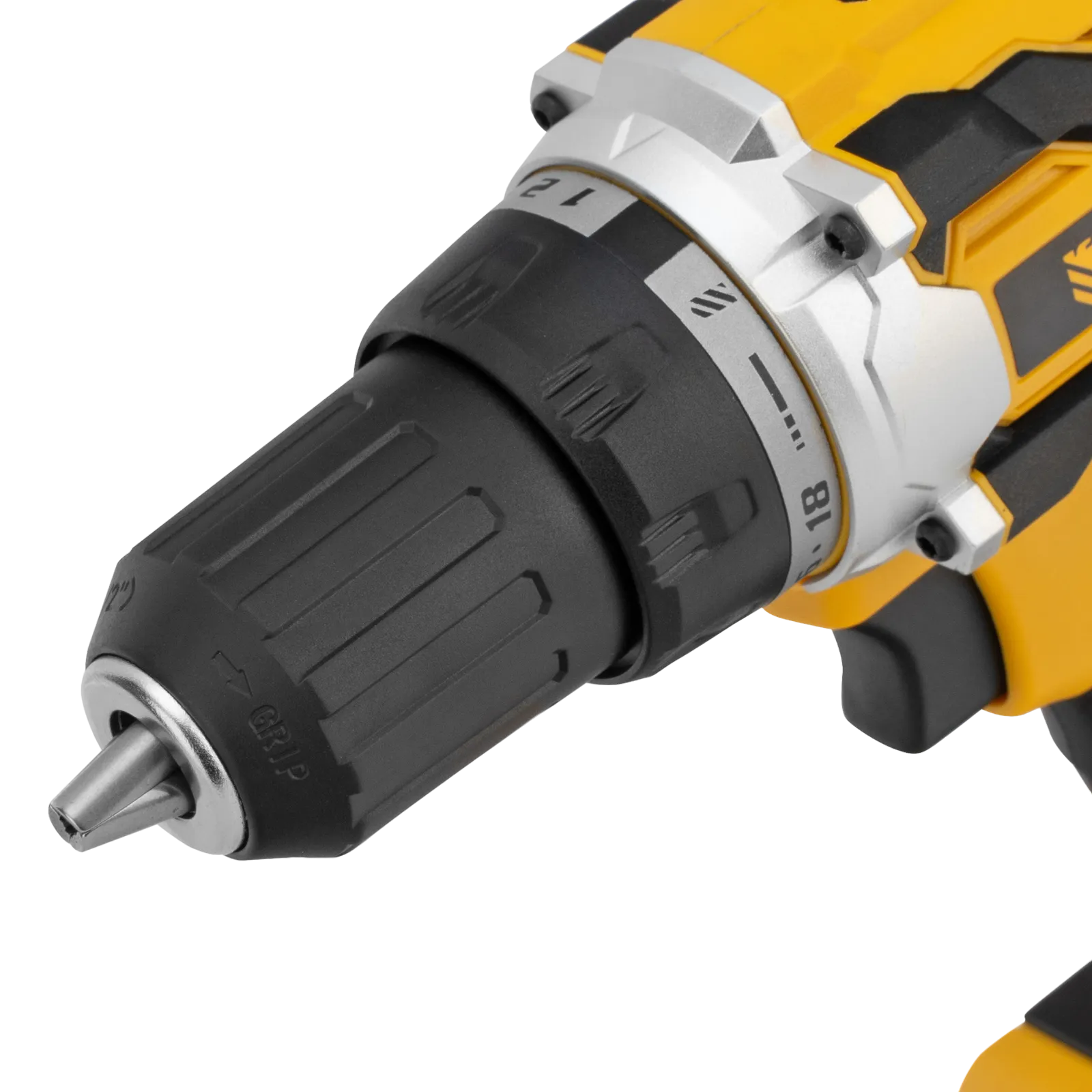 - Настройка крутящего момента — 18+1 ступень регулировки позволяет выбрать оптимальный режим в зависимости от типа крепежа и плотности материала.