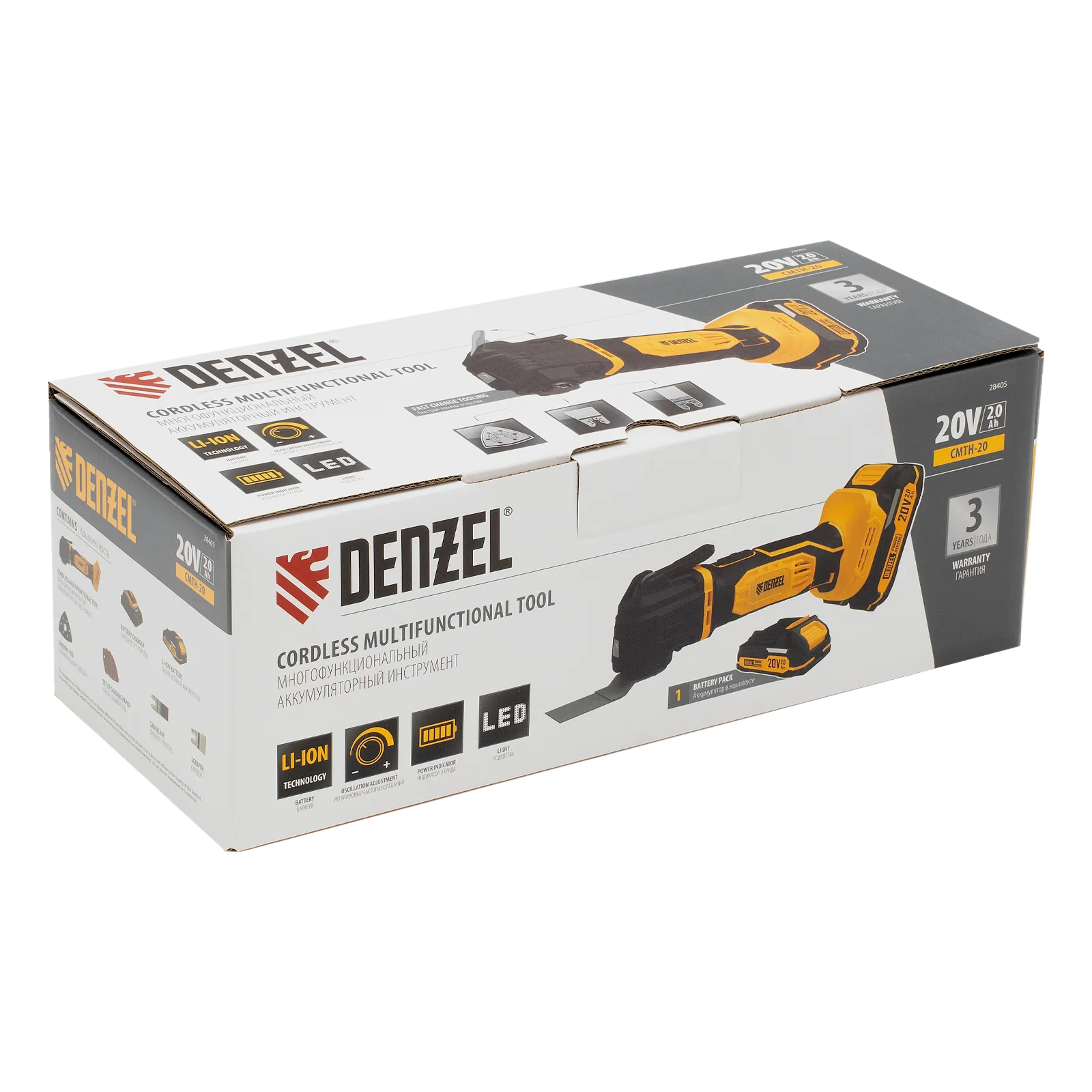 Аккумуляторный многофункциональный инструмент Denzel CMTH-20 28405 работает от источника питания Li-Ion 20 В и используется для выполнения широкого спектра работ: зачистных, отрезных, шлифовальных и т.д. Совместим с различными видами оснастки и подходит для обработки практически любых материалов. Частота колебаний регулируется в диапазоне 5000-17000 об/мин, что позволяет эффективно решать поставленные задачи. Инструмент рекомендован для использования в быту.