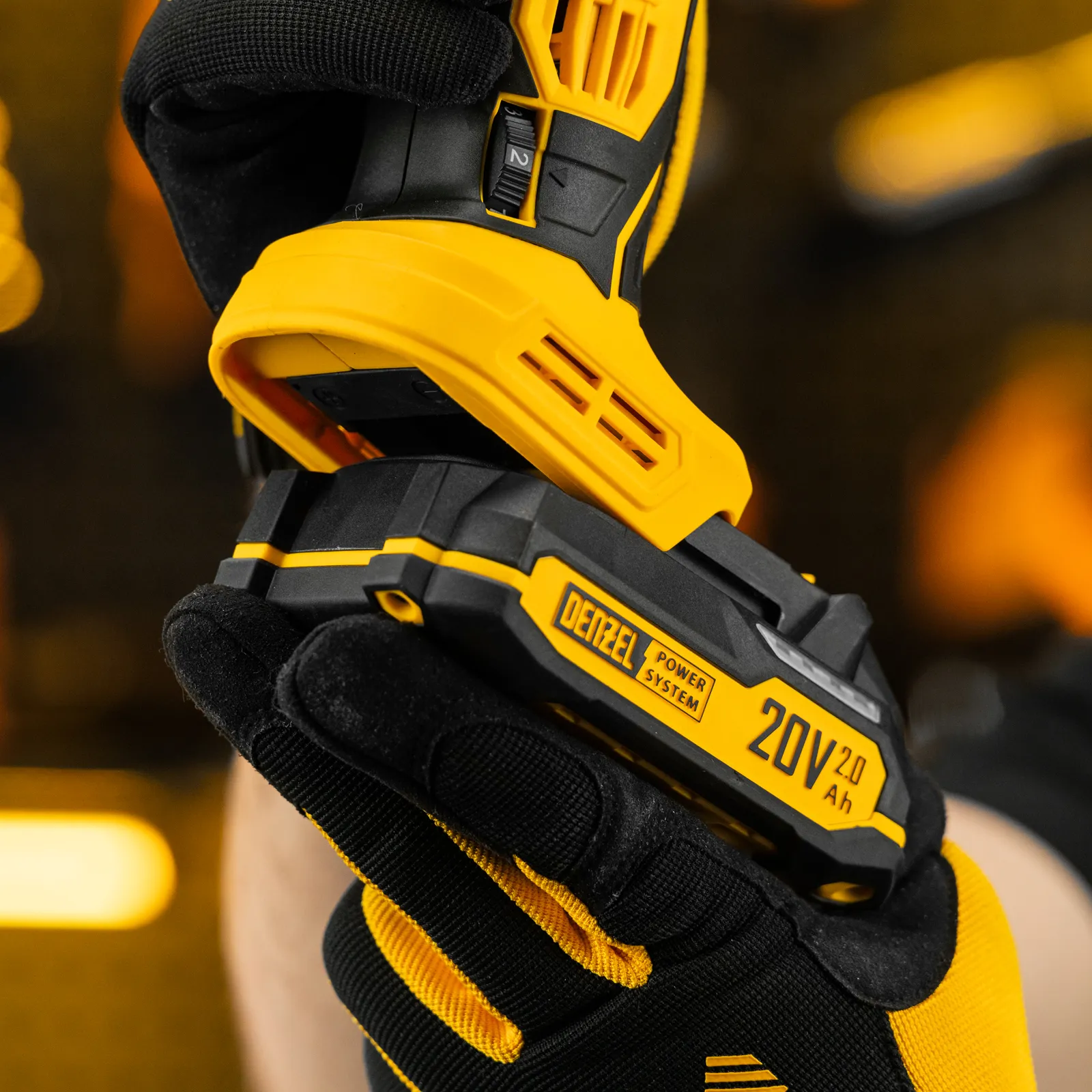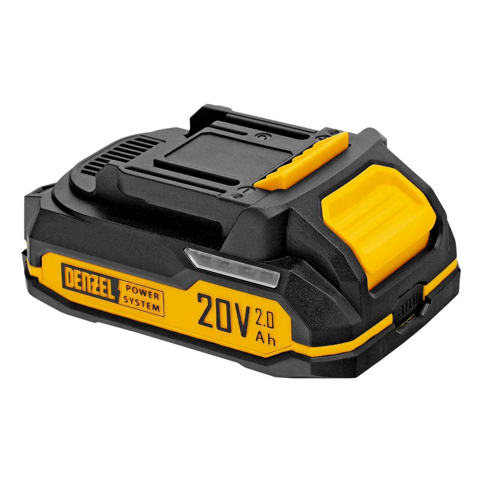 - Универсальность — аккумулятор Li-Ion емкостью 2 А·ч совместим со всеми инструментами единой платформы Denzel Power System 20V.