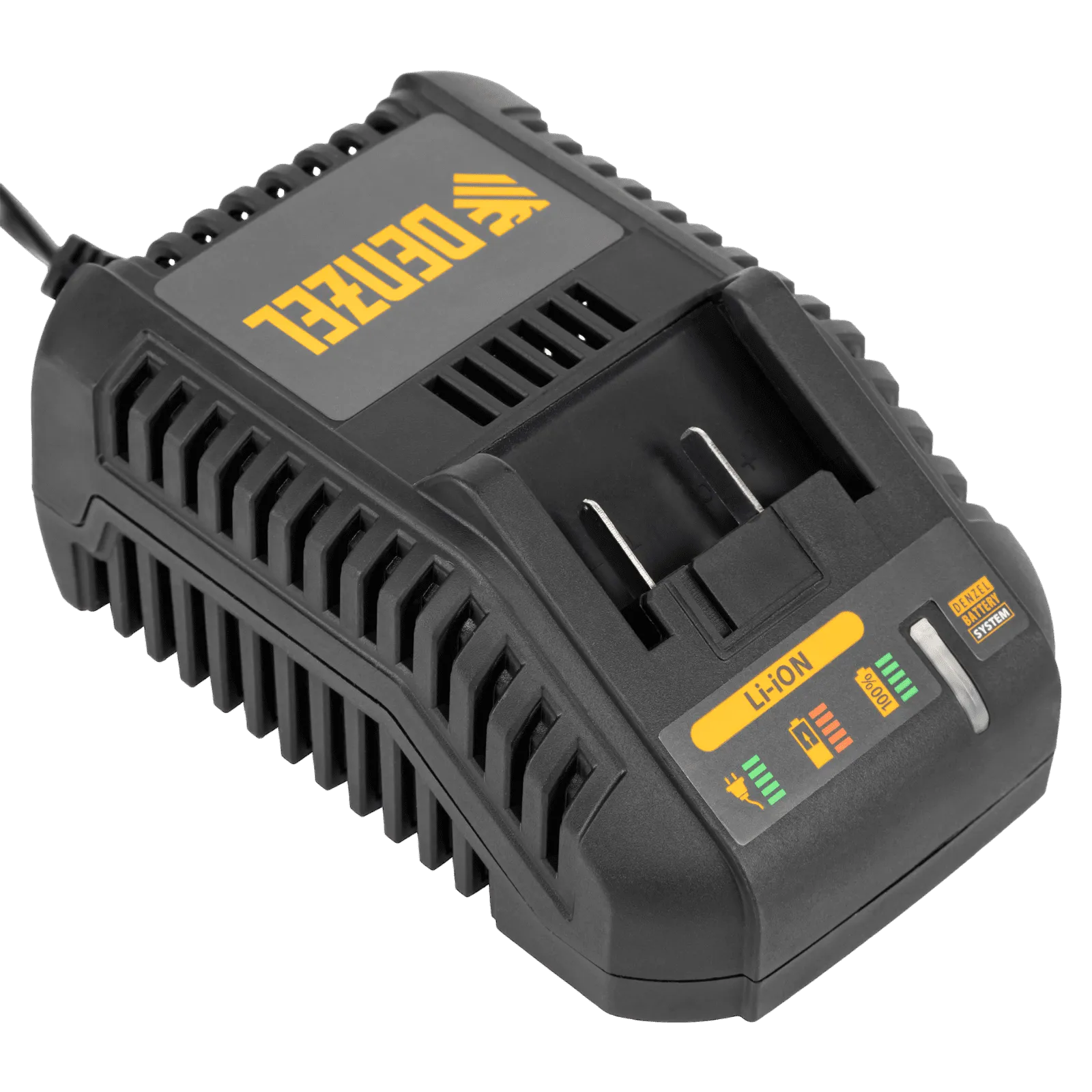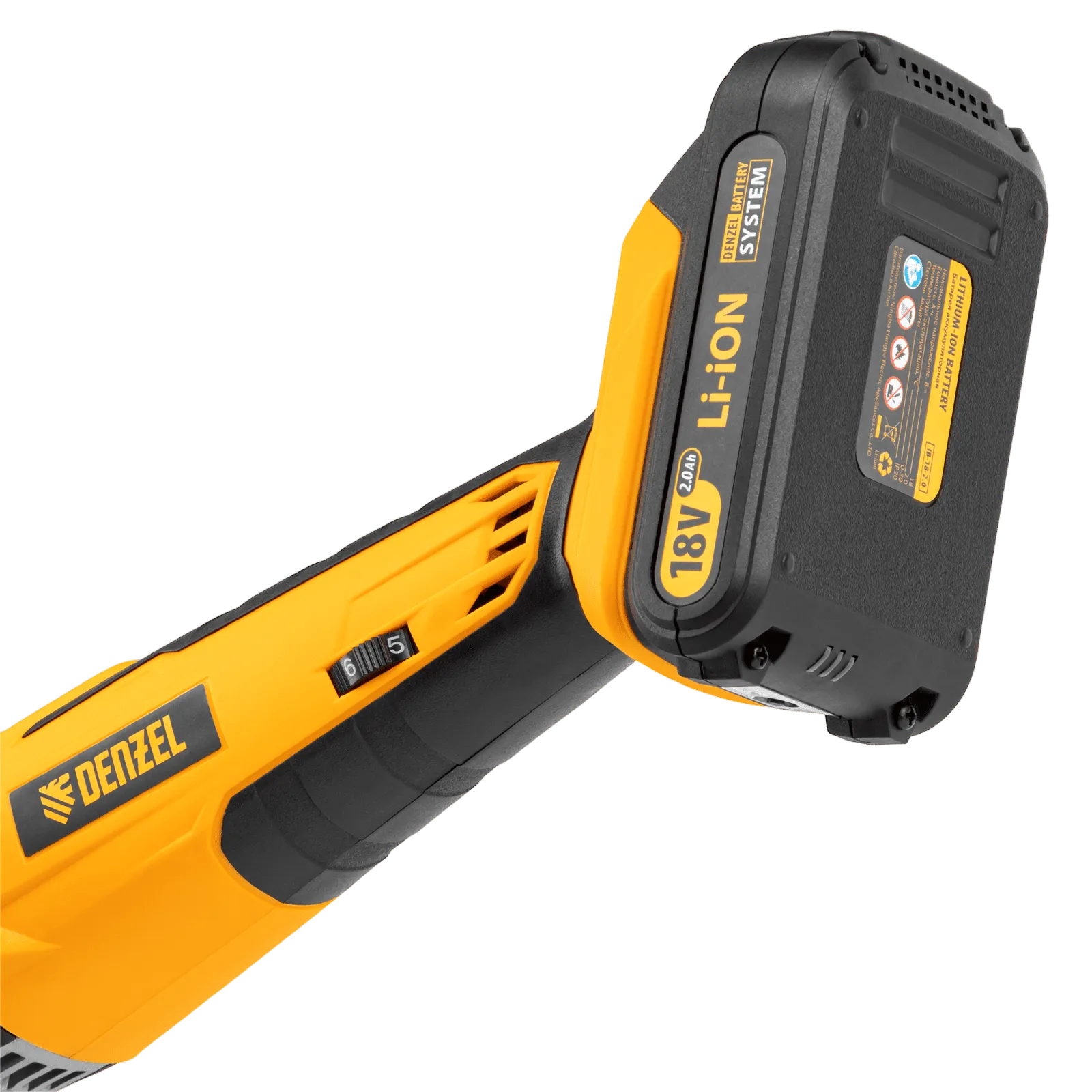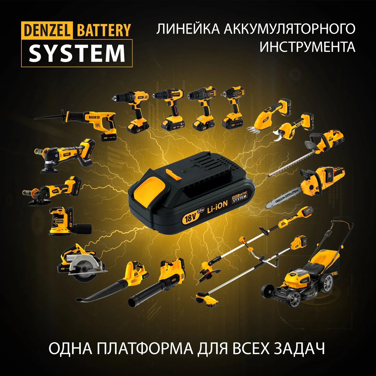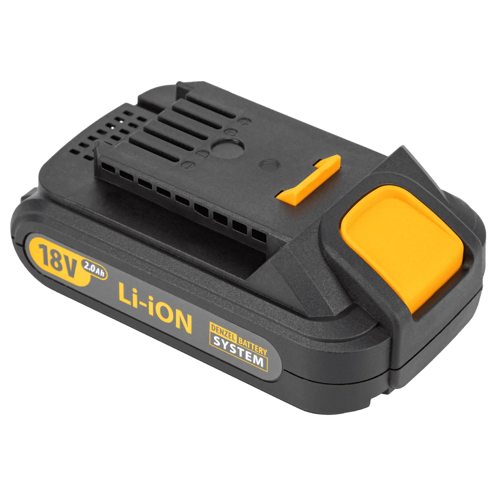 - Универсальность — аккумуляторная батарея Li-ion емкостью 2 Ач совместима с любым инструментом из модельного ряда единой платформы Denzel Battery System 18V.