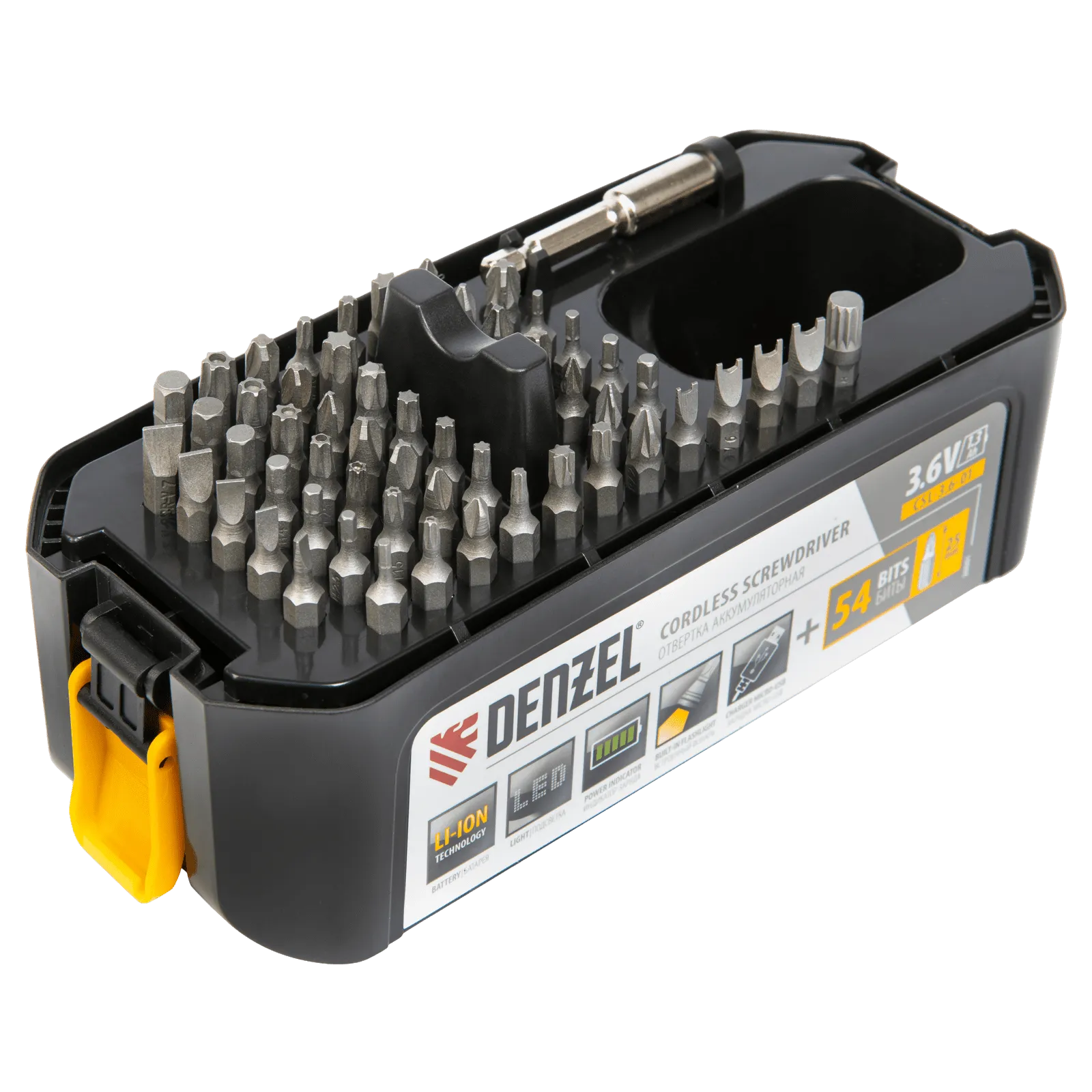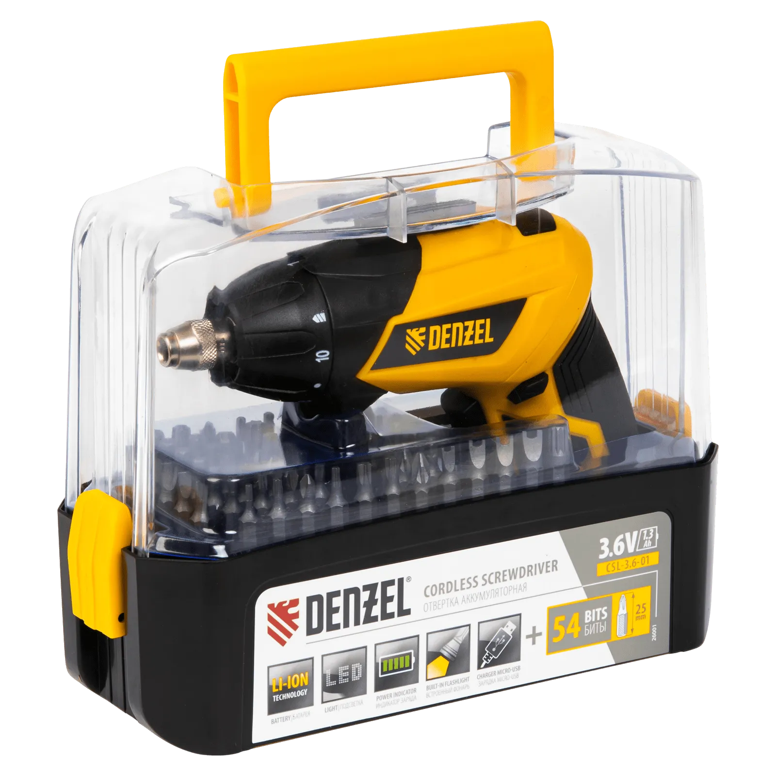 Аккумуляторная отвертка Denzel CSL-3,6-01 26001 с аккумулятором Li-Ion на 3,6 В и 1,3 Ач, в комплекте с аксессуарами, используется для работы с саморезами, шурупами и винтами. Быстро справляется с закручиванием крепежа благодаря максимальному крутящему моменту 4 Нм и частоте вращения 200 об/мин. Встроенный литий-ионный аккумулятор быстро заряжается, характеризуется низким саморазрядом, и отсутствием эффекта памяти, что обеспечивает эффективную работу.